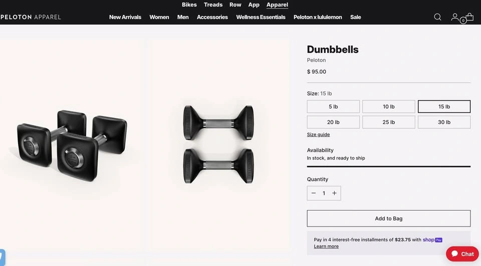 Selling two pairs of Peloton dumbbells: