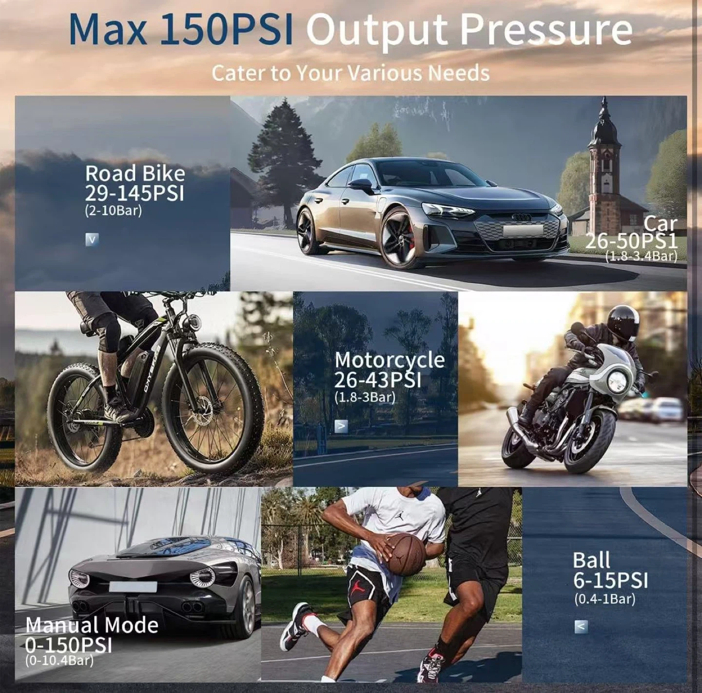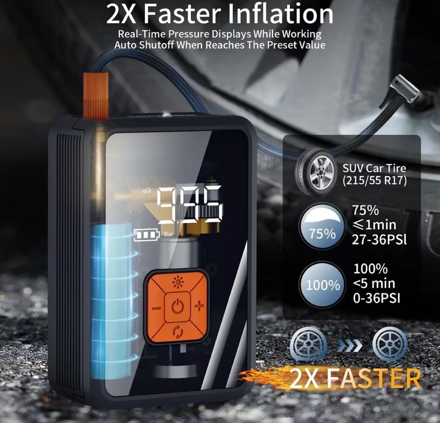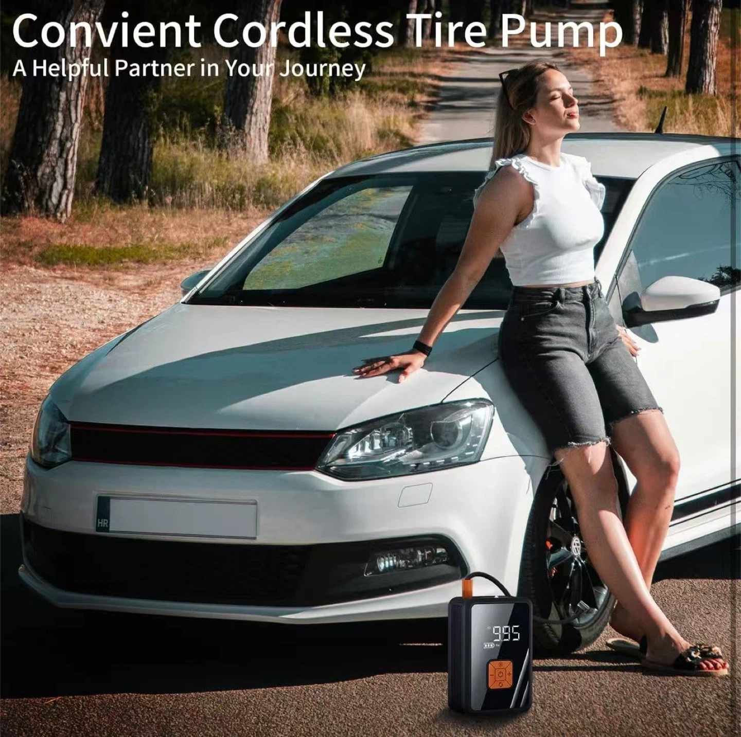 Portable Air Pump for Car Tires, 150 PSI Tire Inflator Cordless with LED Light, Rechargeable Auto Shut-off Air Compressor 2X Fast Inflation Tire Pumps for Car Bike Motorcycle Ball