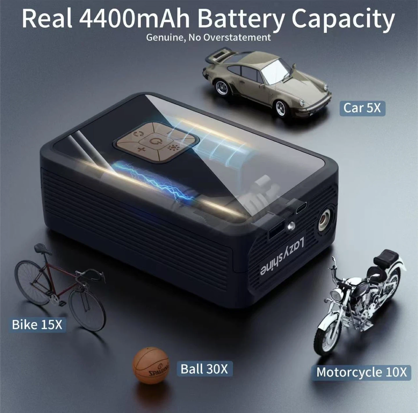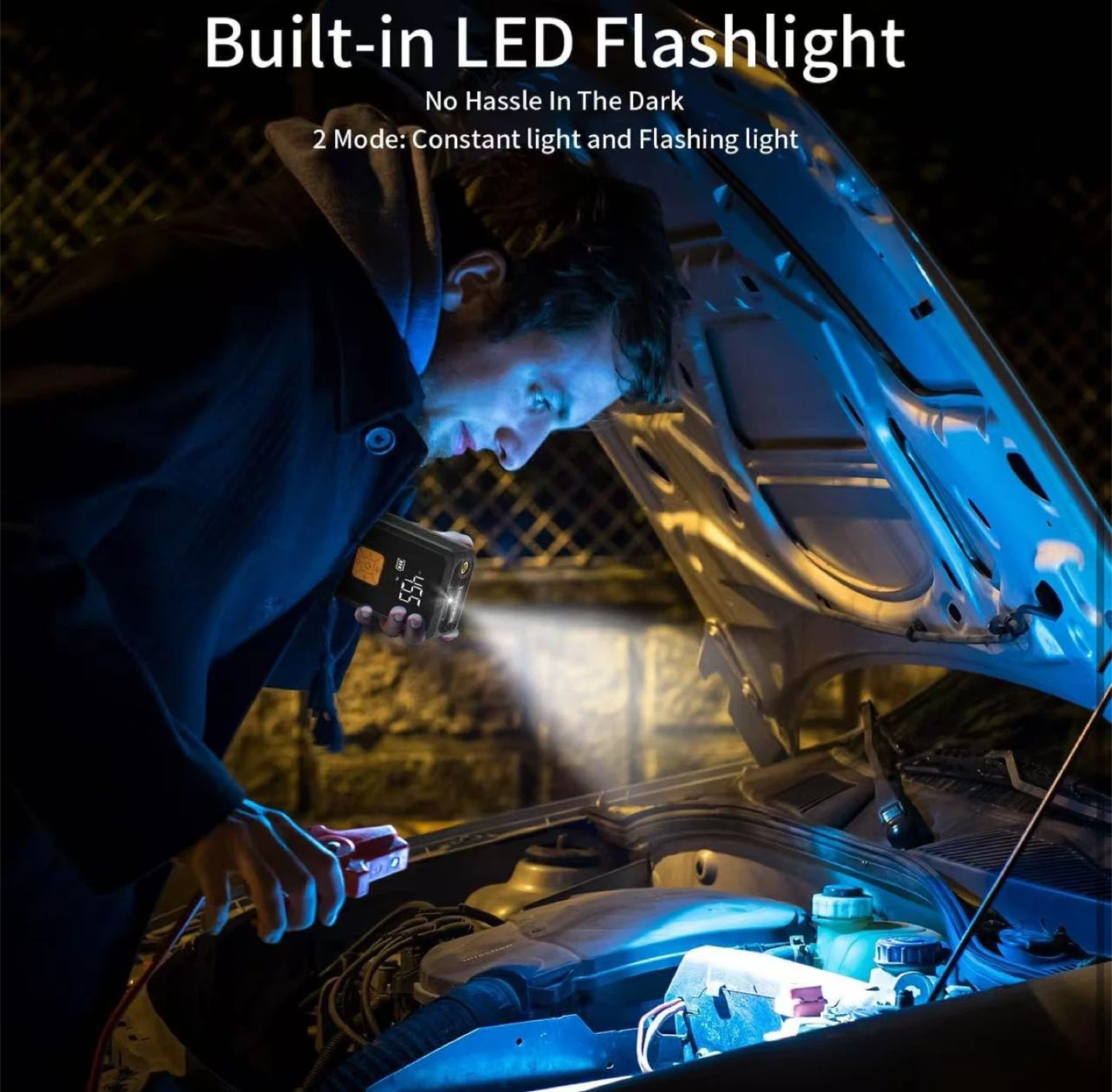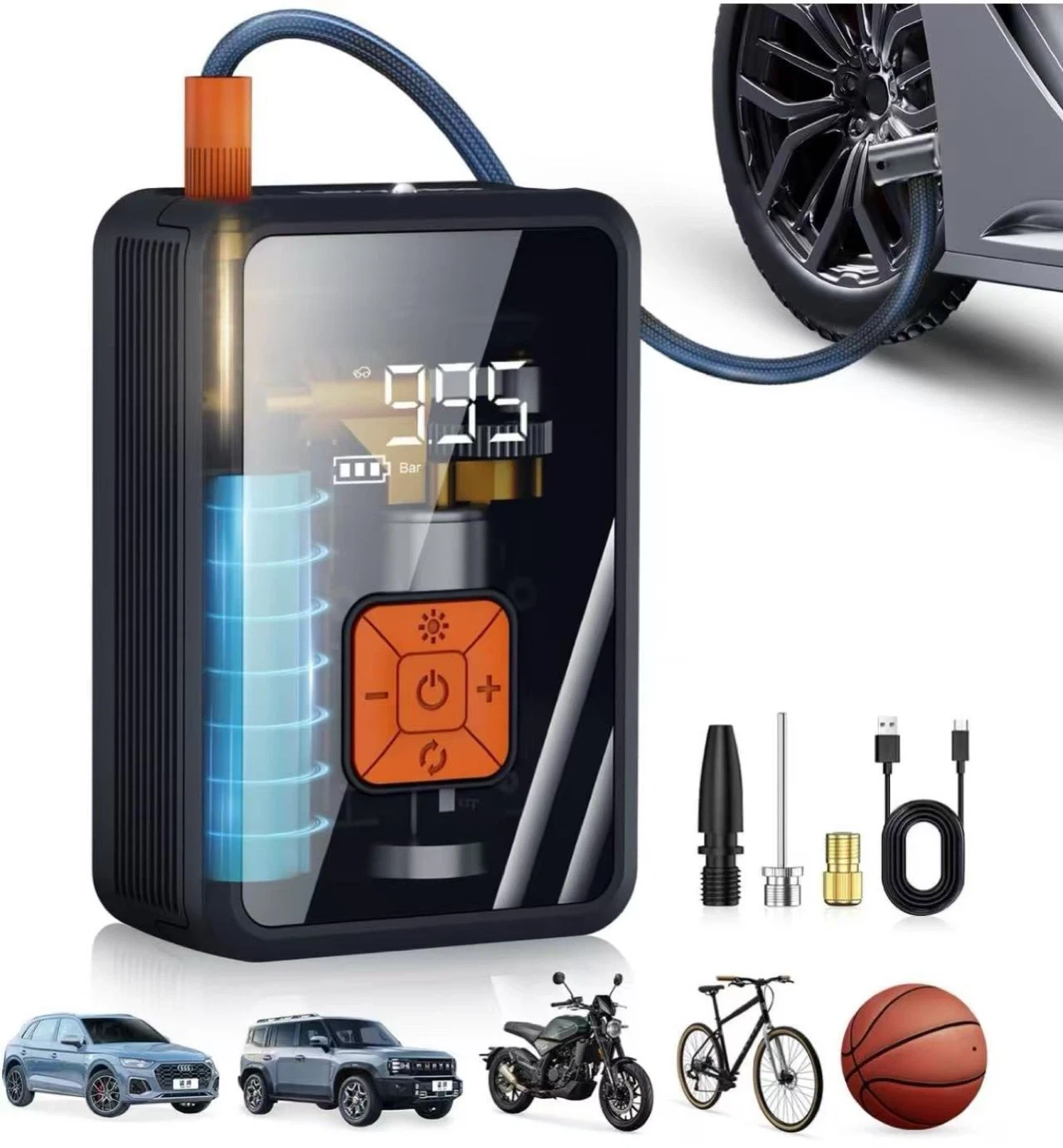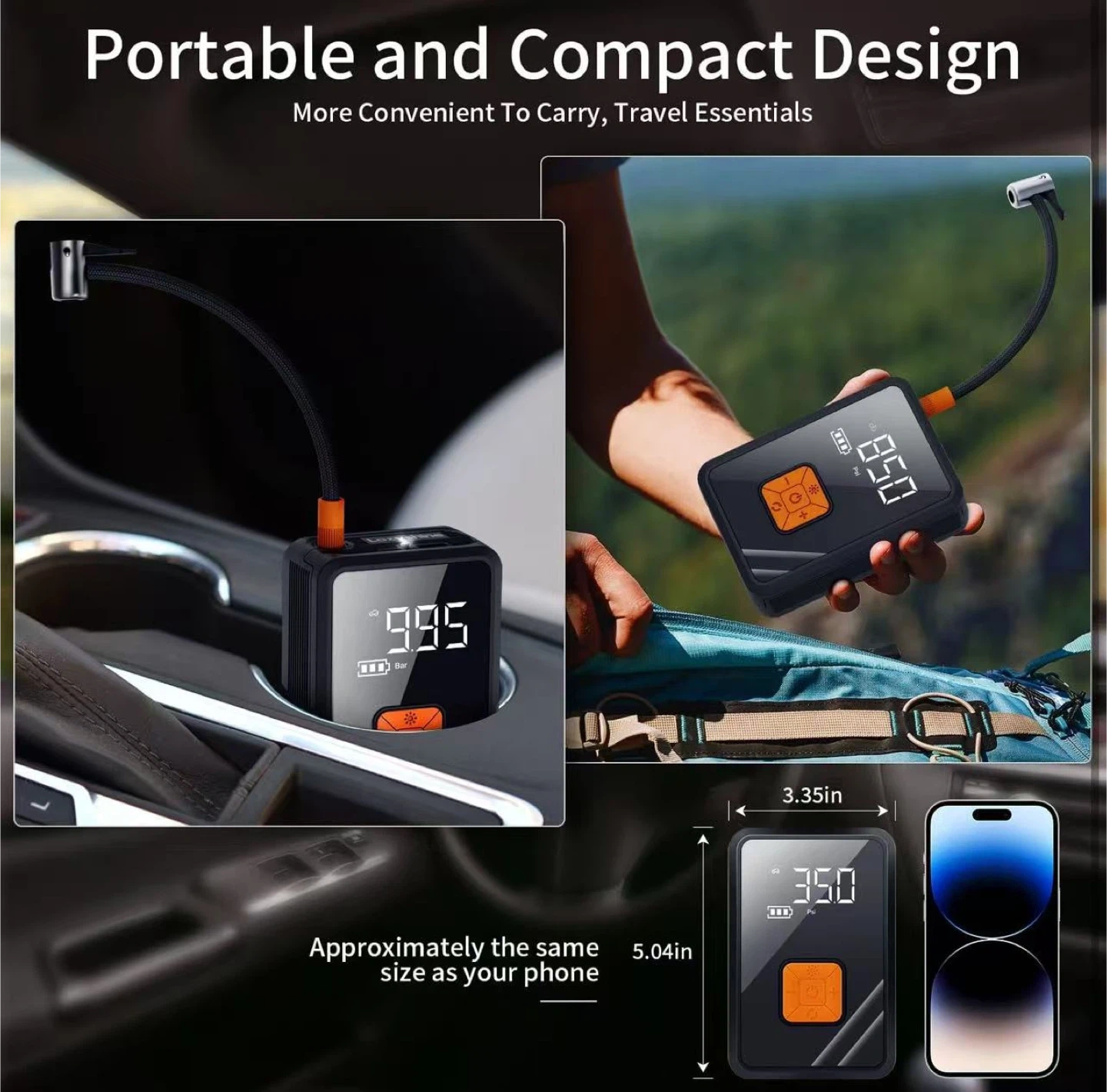 Portable Air Pump for Car Tires, 150 PSI Tire Inflator Cordless with LED Light, Rechargeable Auto Shut-off Air Compressor 2X Fast Inflation Tire Pumps for Car Bike Motorcycle Ball