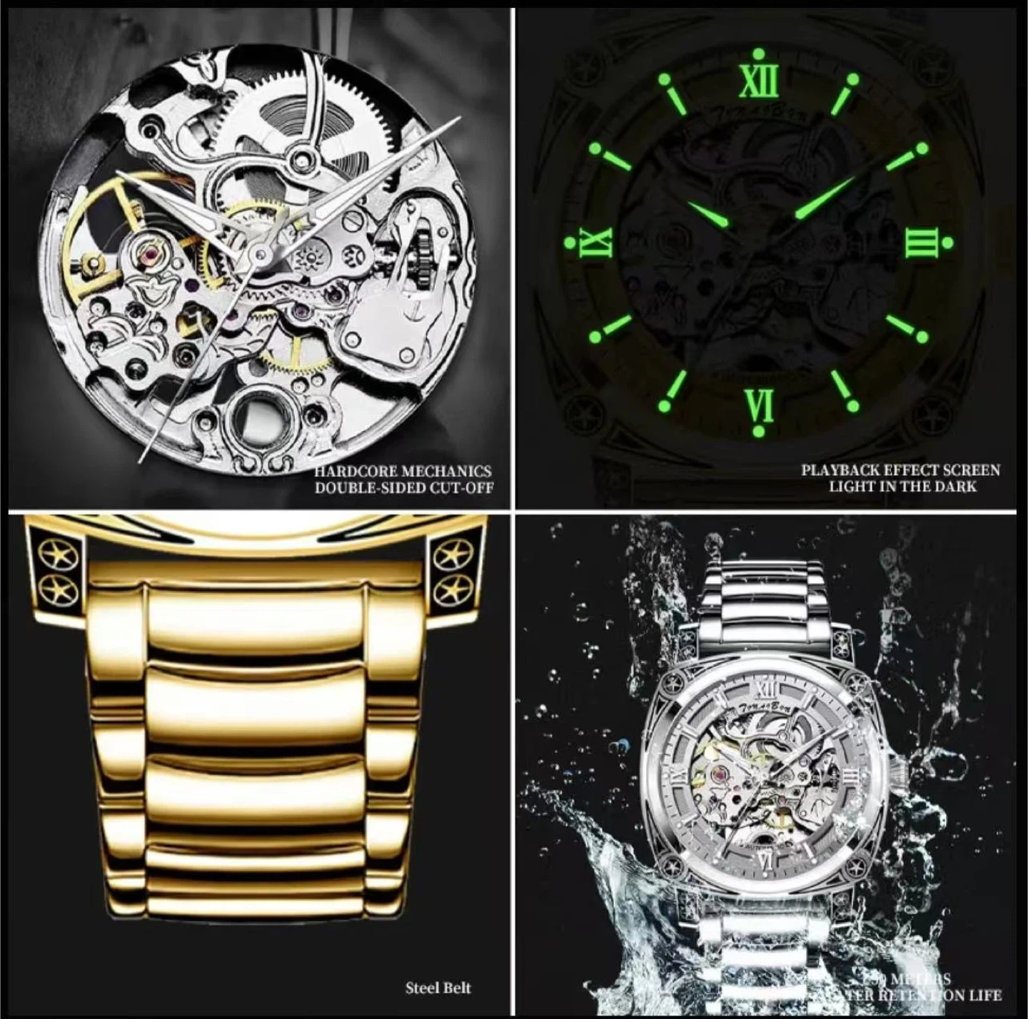 New Mechanical Watch for Men Automatic Mechanical Watches Hollowed Out Carved Wristwatch Waterproof Luminous