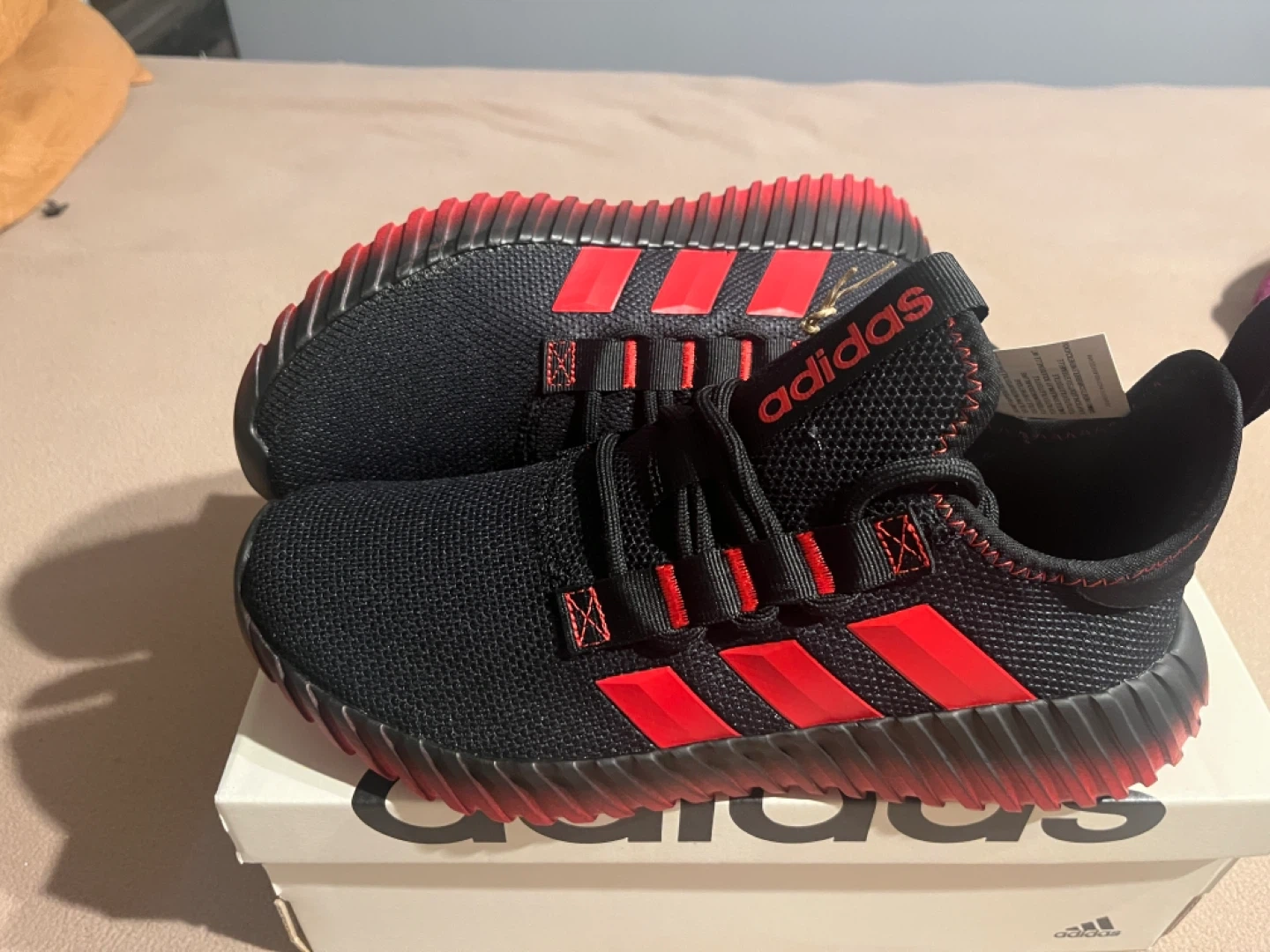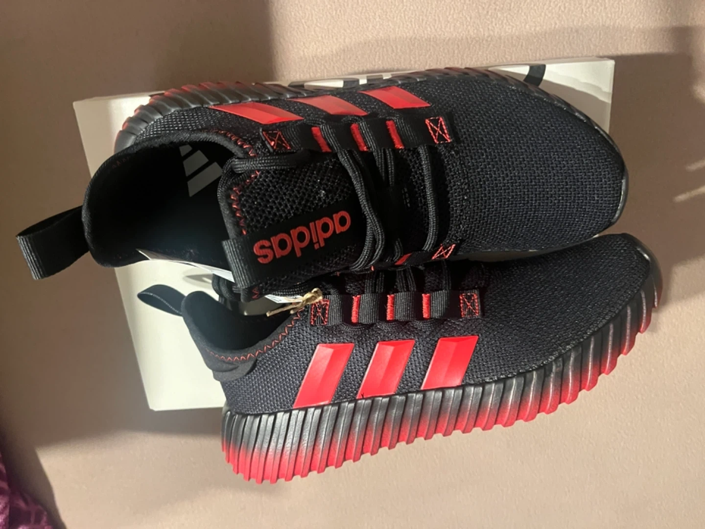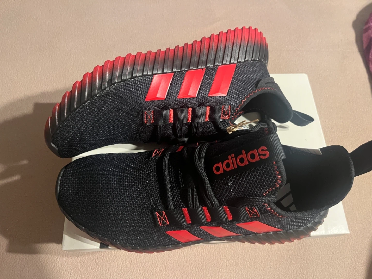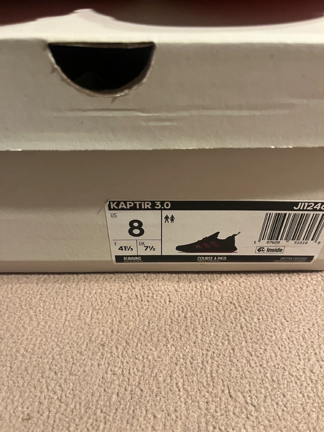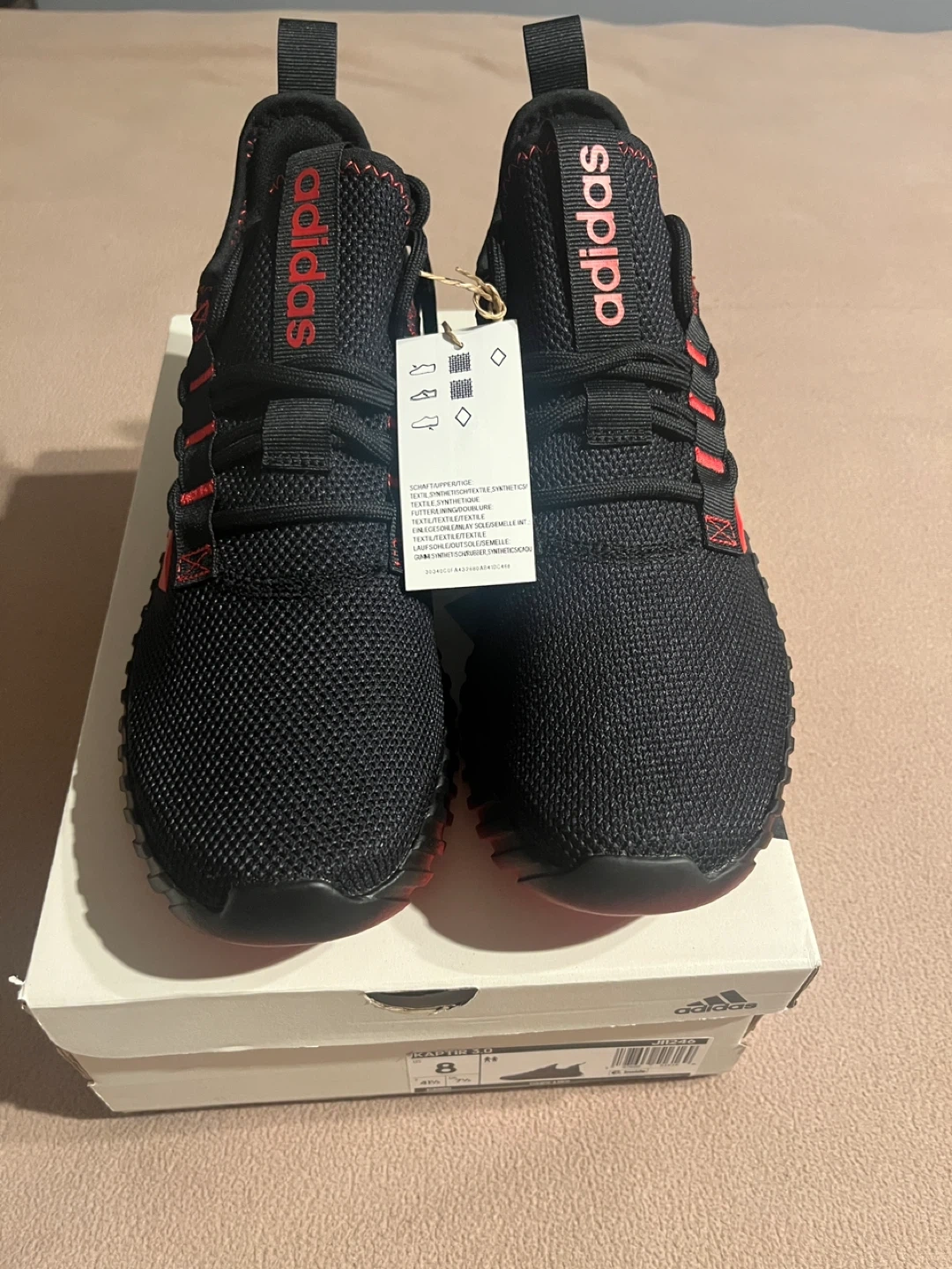 Selling a pair of Adidas Kaptir 3.0 running shoes in black with red accents! They are a US size 8 and come with the original box