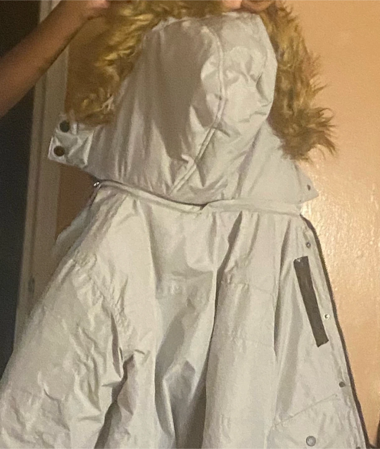 Selling a riu puffer jacket with a fur hood. It's in great new condition and ready to keep you warm! The jacket features a stylish design and a cozy fur-trimmed hood. Size 14/16