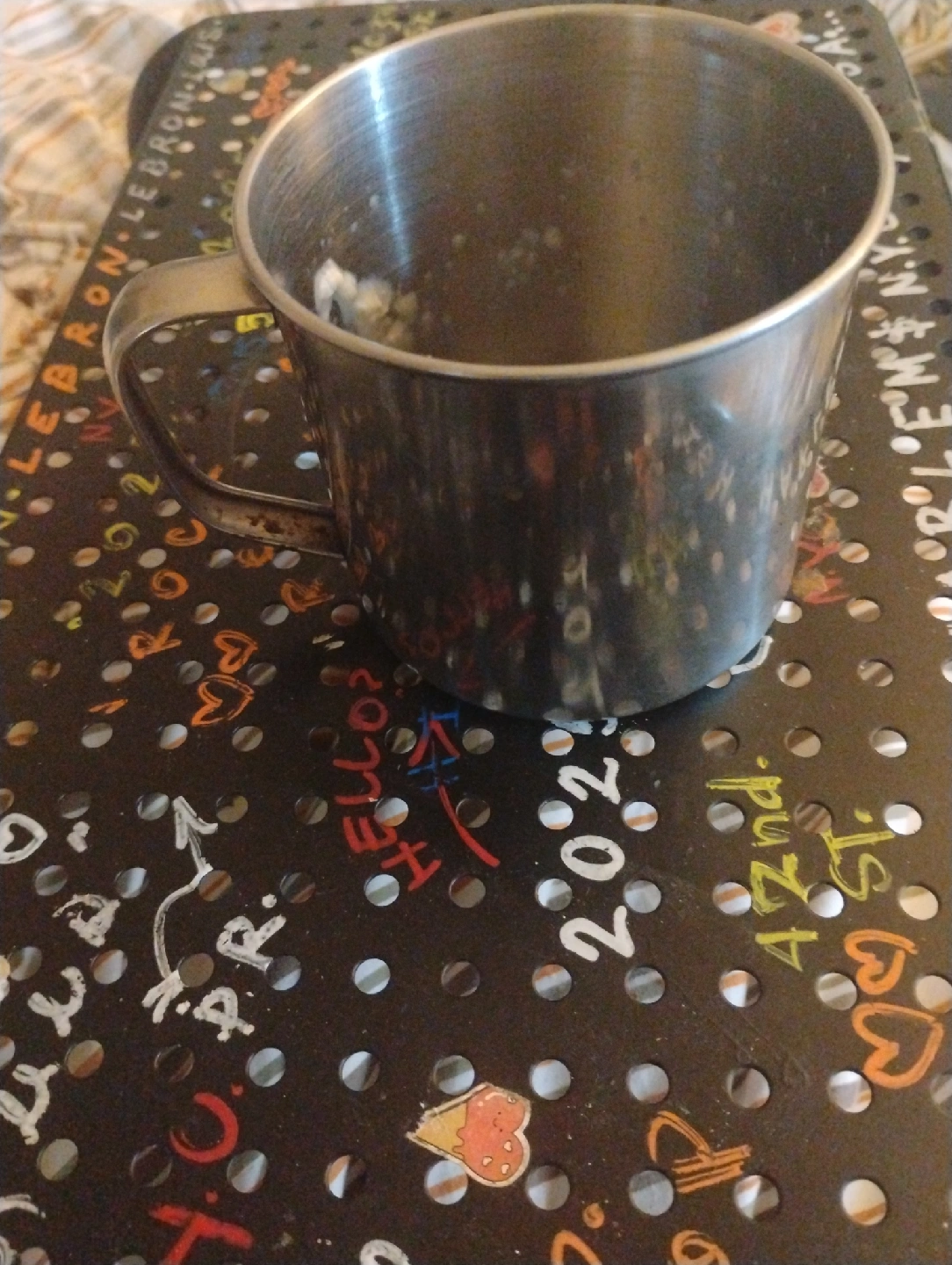 Here's a stainless steel mug that's ready for a new home! It's in good condition and perfect for your favorite hot or cold beverages