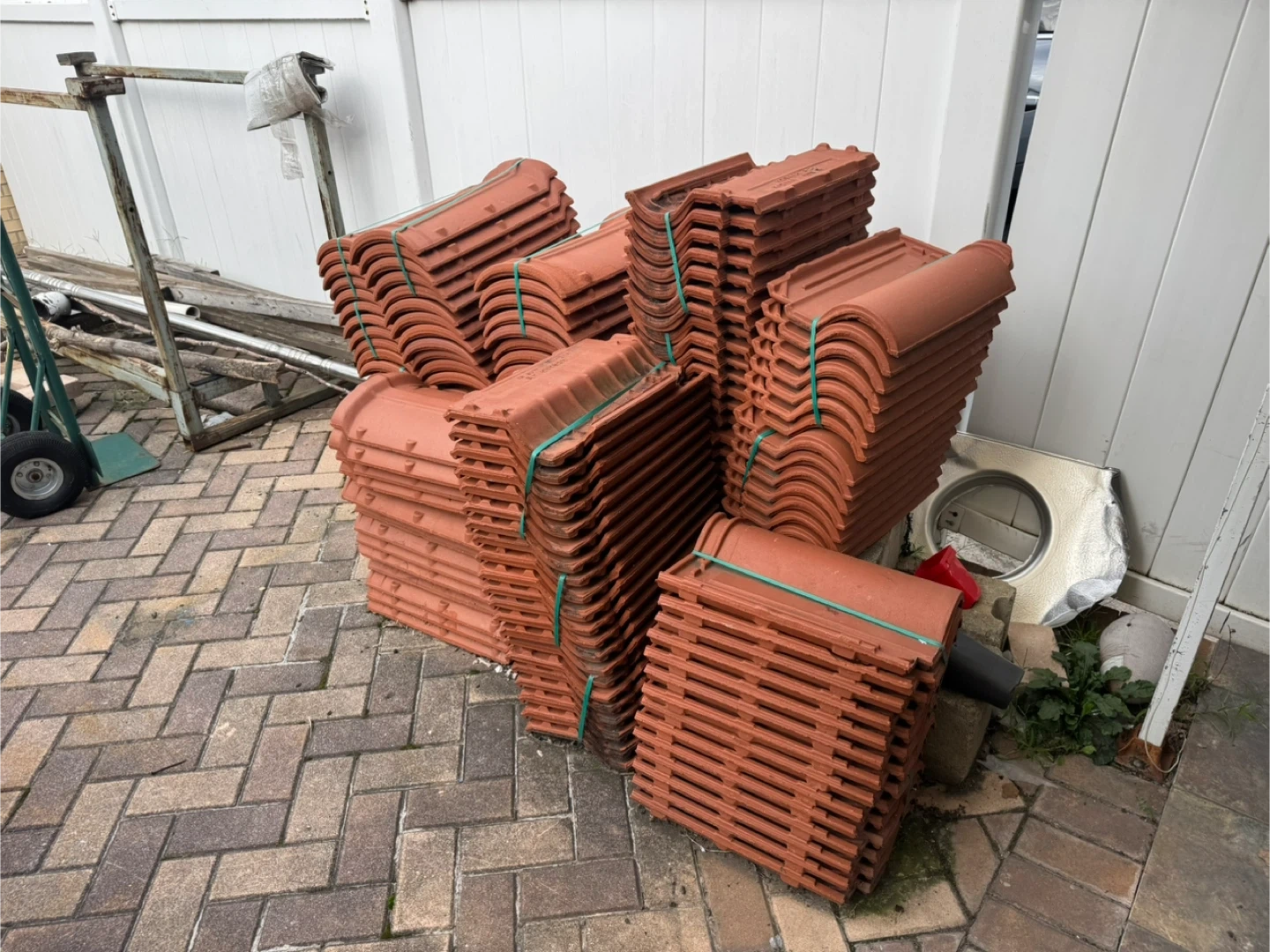 terracotta roof tiles available. They are in good condition and ready to be used for your roofing project. $5 each tile or best reasonable offer.