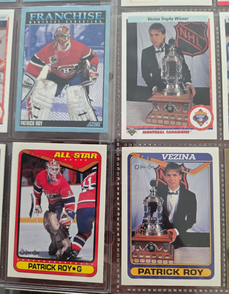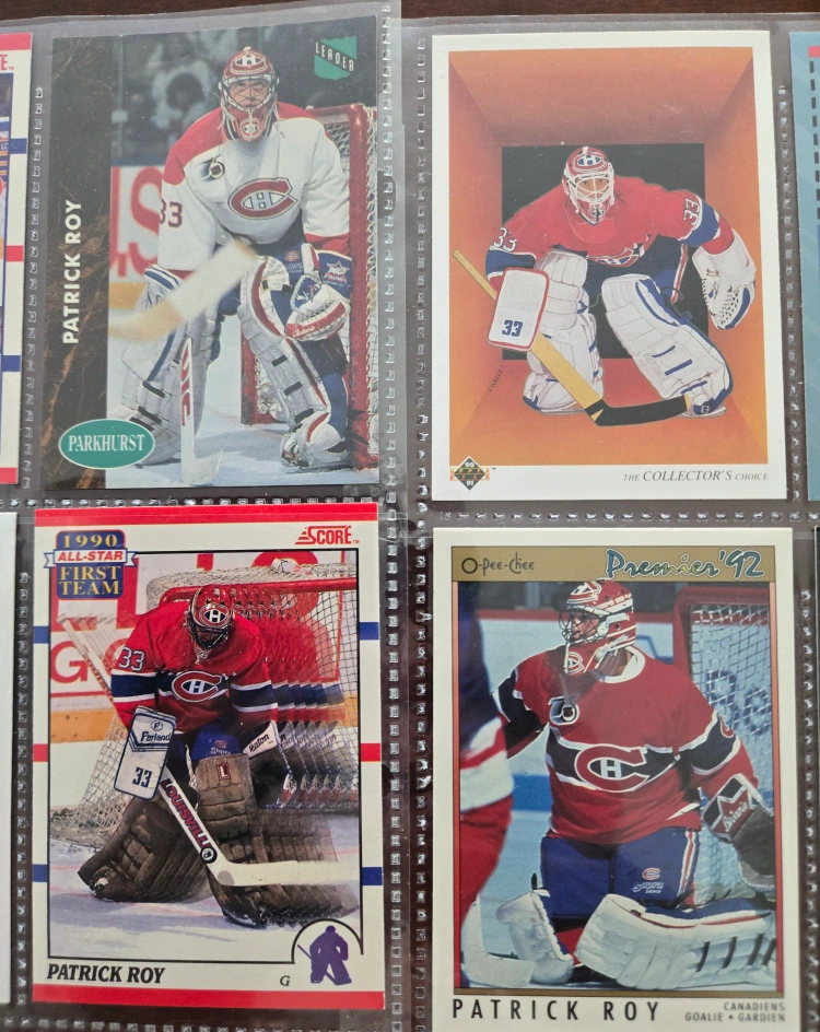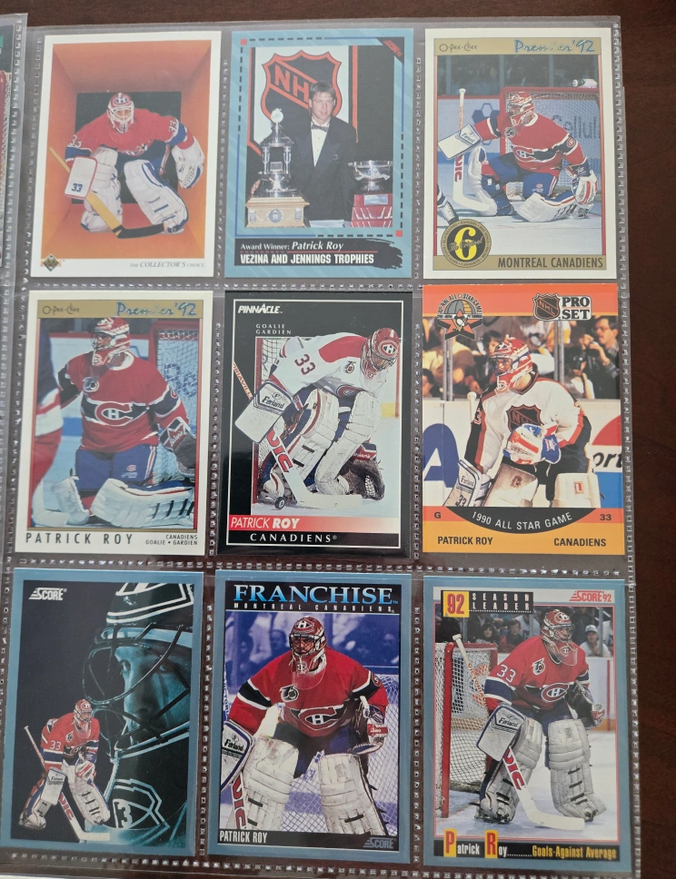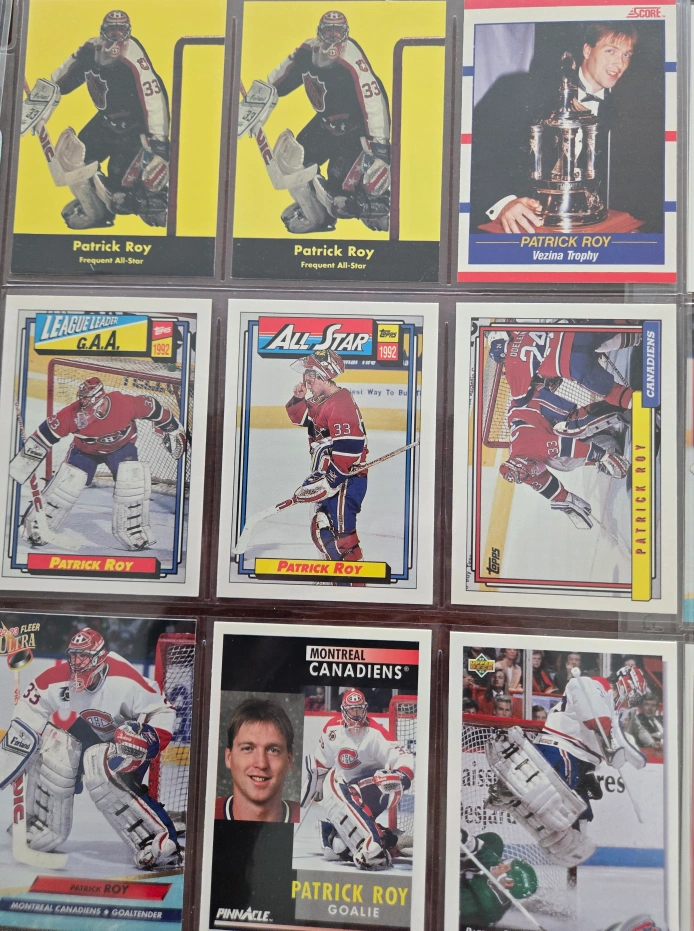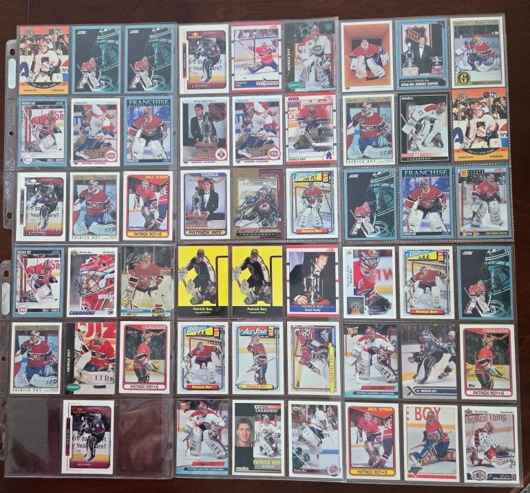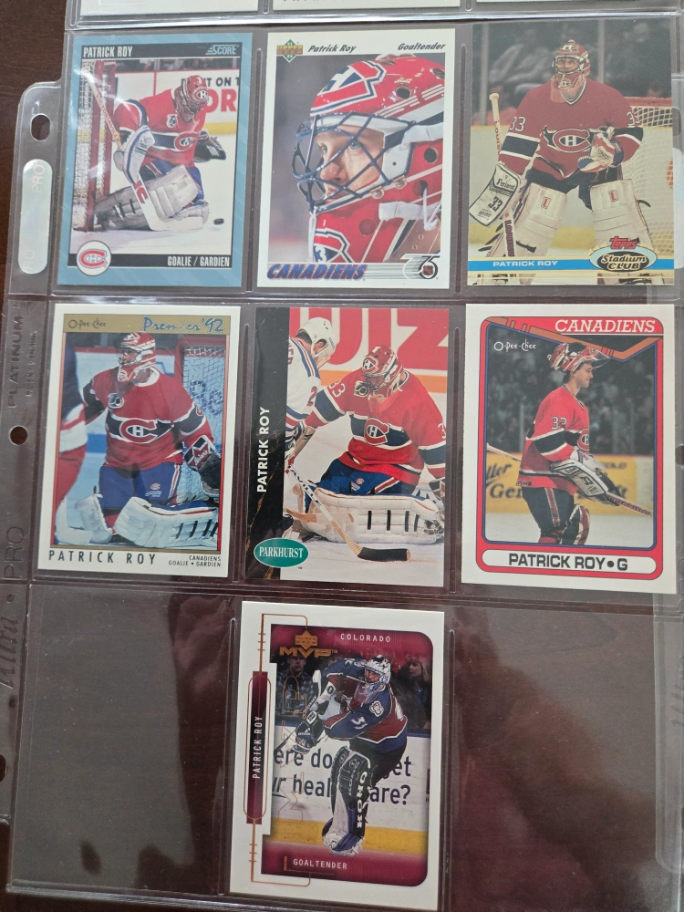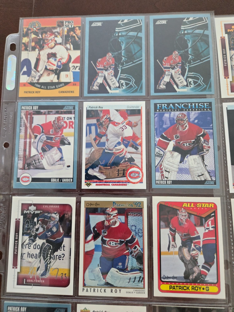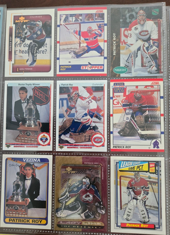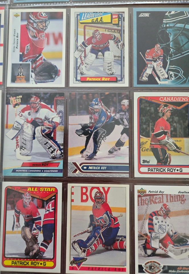 115Selling a collection of 54 Patrick Roy hockey cards. A must-have for any Montreal Canadiens fan or sports card collector! The cards feature various designs and years, showcasing Roy's career highlights. Mint Condition.