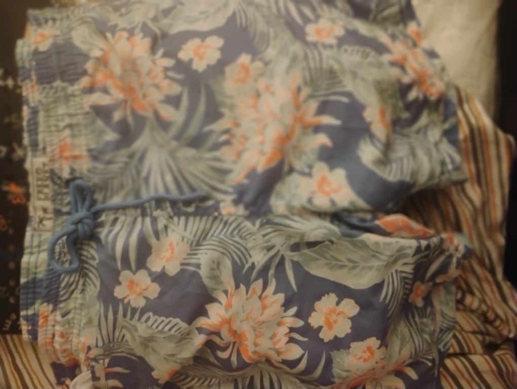 Selling a pair of Free Planet swim trunks with a fun floral design! They're made of 100% polyester and feature a drawstring. Great for the beach or pool