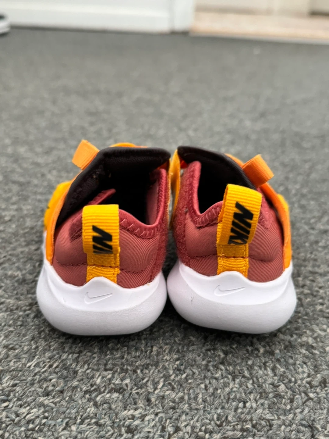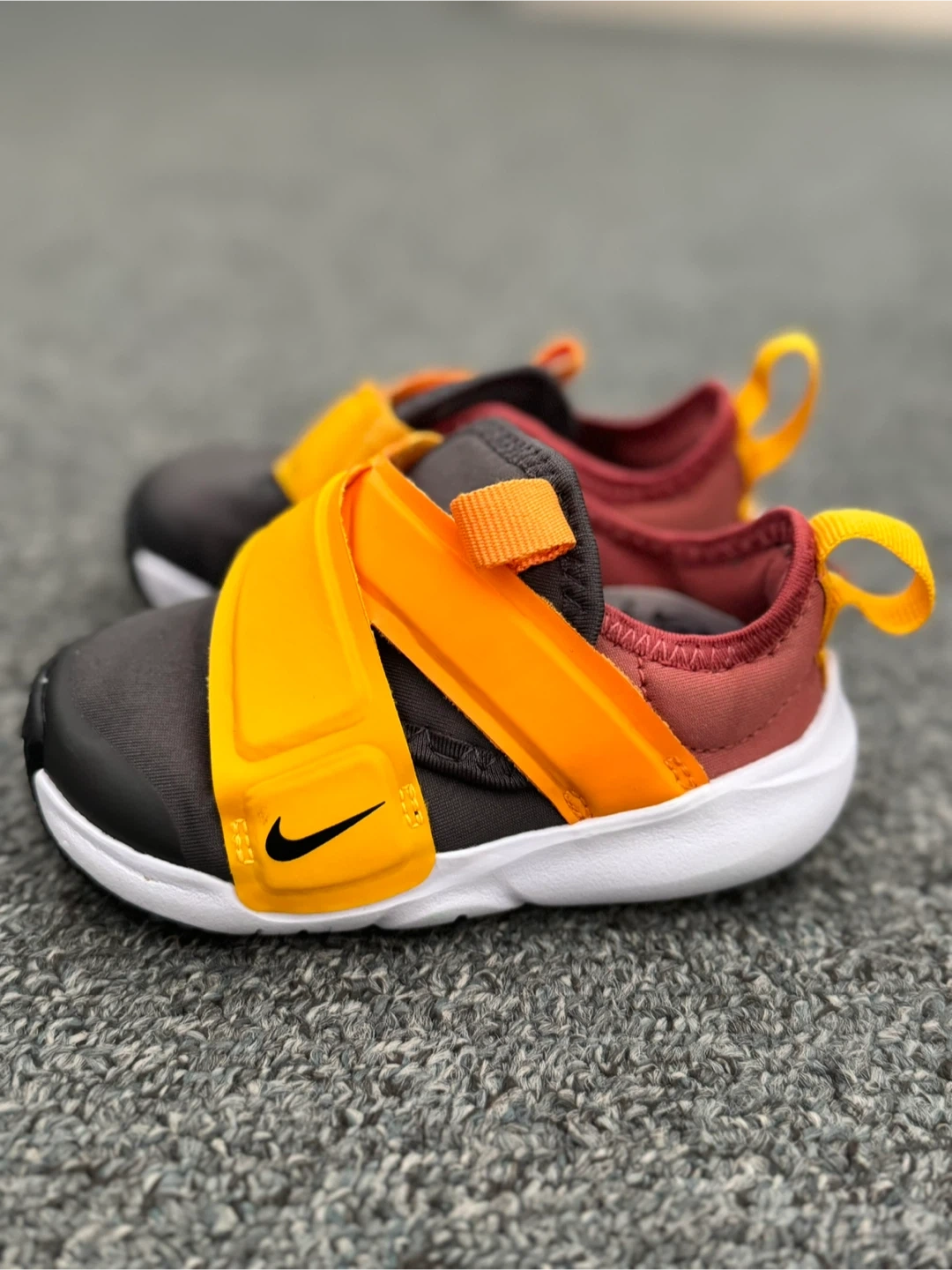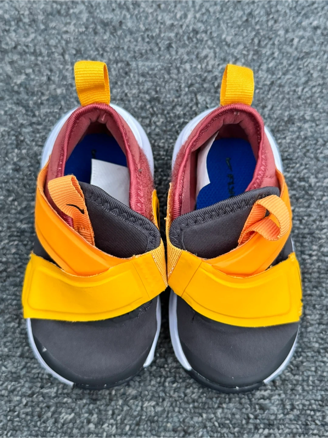65These Nike Dynamo Go toddler shoes are in great condition! They feature a unique slip-on design with a stretchy, comfortable fit. The bright yellow and orange accents add a fun pop of color. Perfect for active little ones! Size 5C