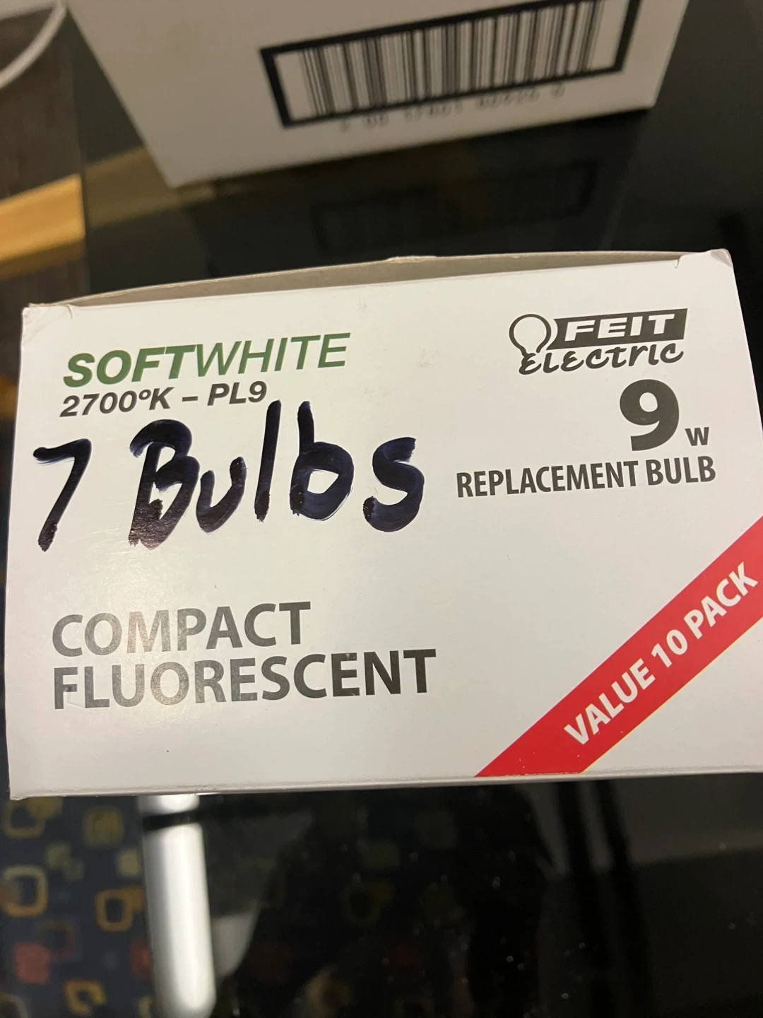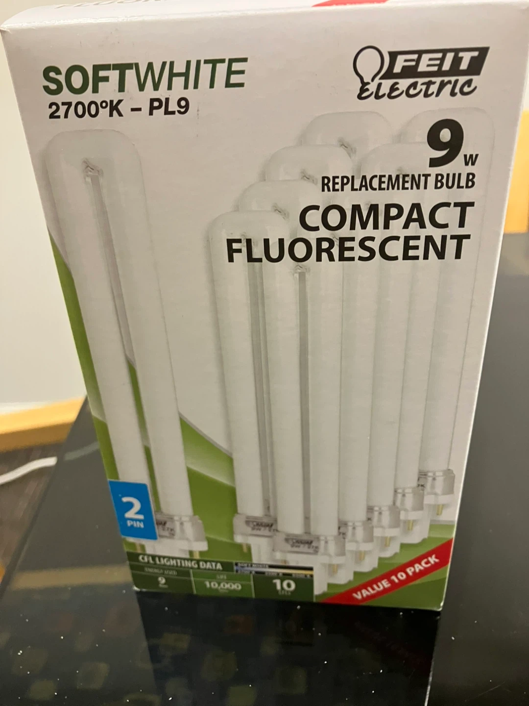 Selling a 7 pack of Feit Electric compact fluorescent light bulbs. These are soft white, 2700K, and 9W. There are 7 bulbs in the pack. Perfect for replacing old bulbs! Cash and pick up only!