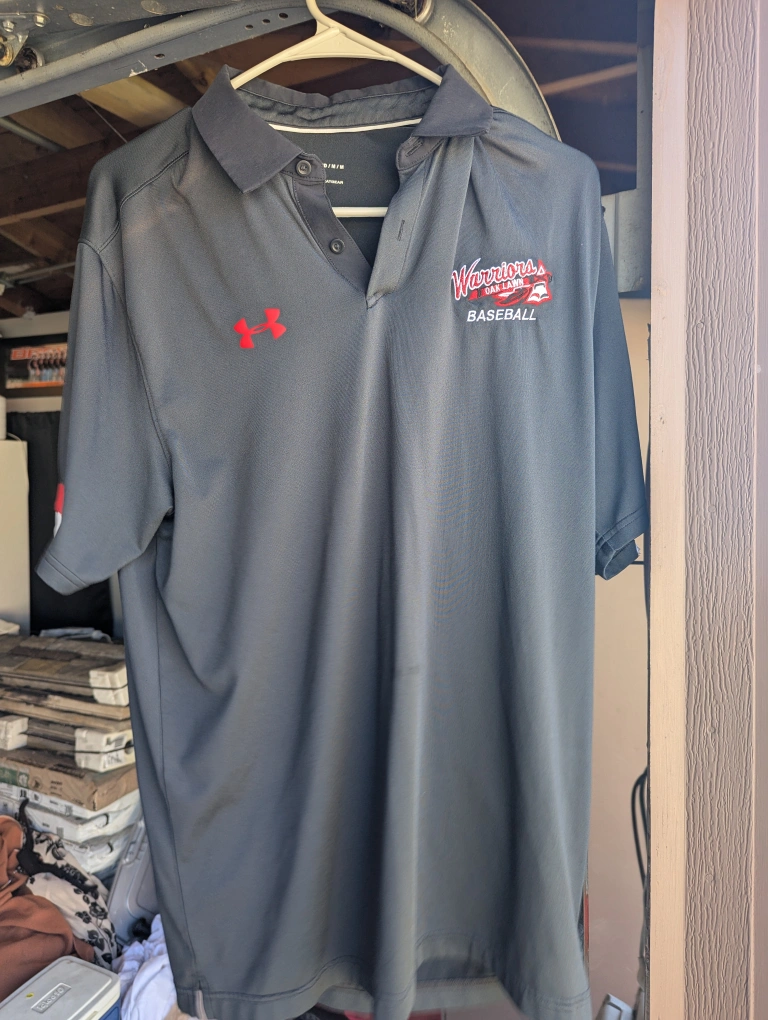 Selling an Under Armour polo shirt featuring the Warriors Baseball logo. It's a size medium and in great condition. Perfect for showing your team spirit!