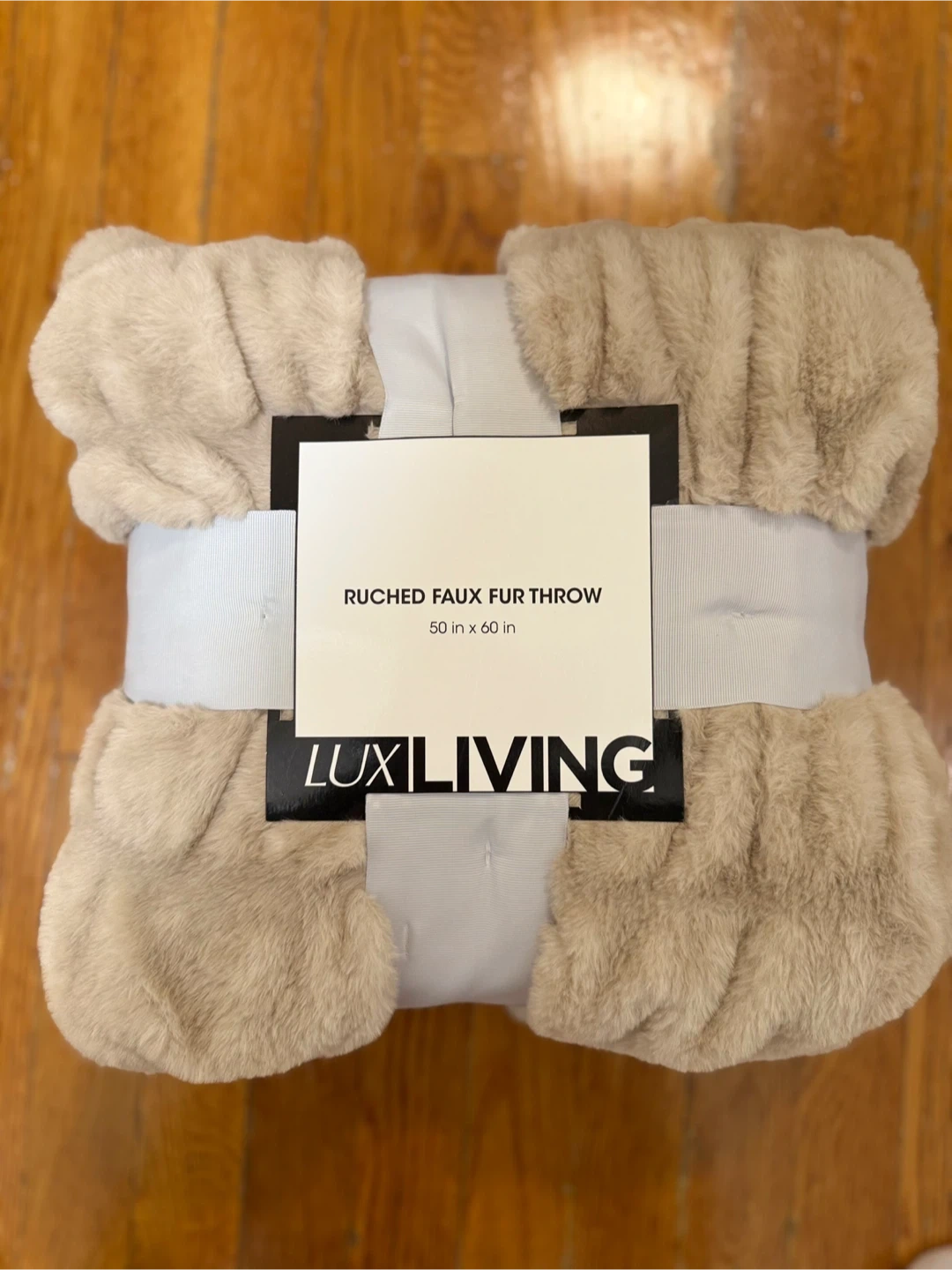 Snuggle up with this Lux Living ruched faux fur throw! It's super soft and measures 50 inches by 60 inches. Color beige