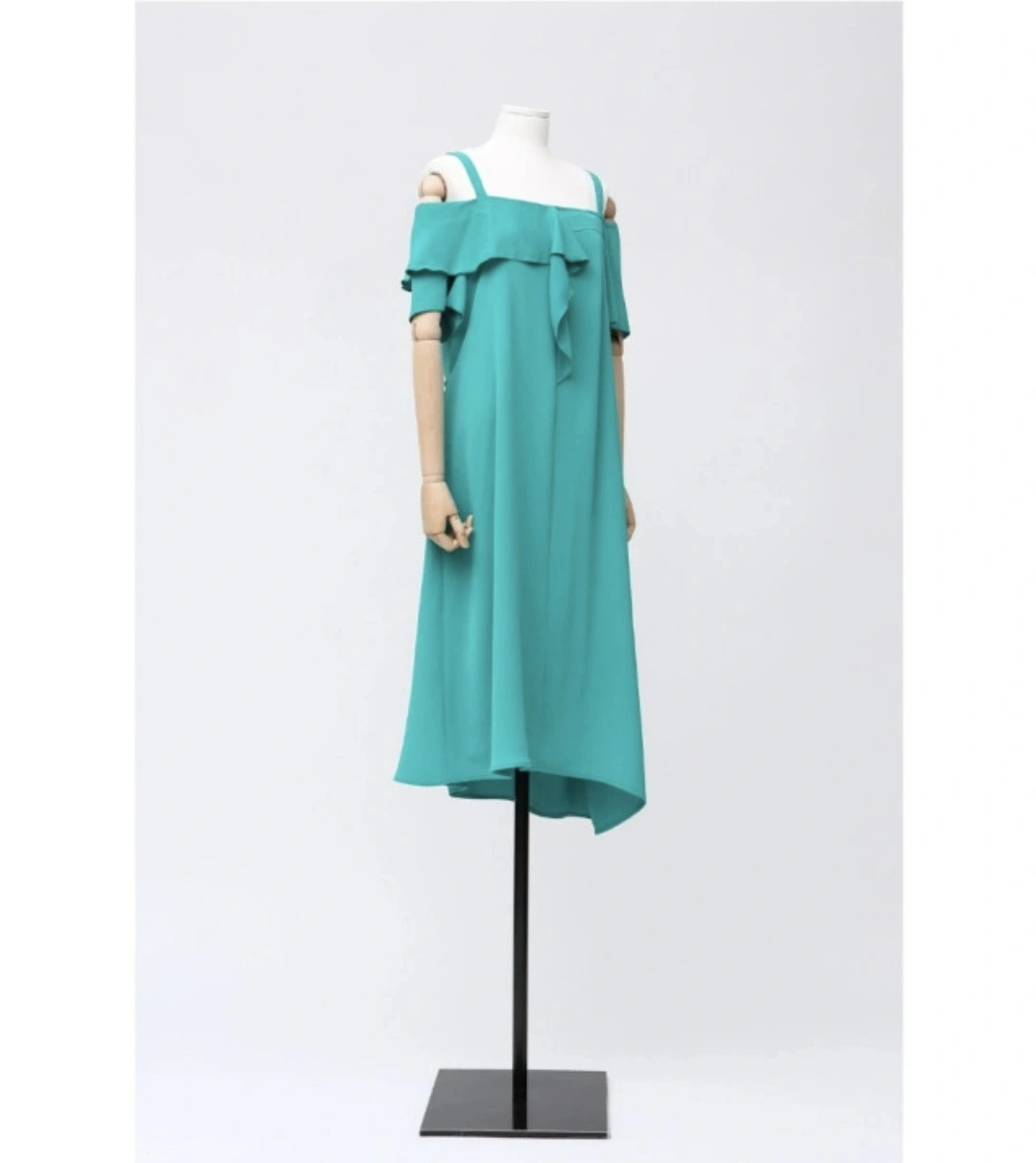 Selling a beautiful off-shoulder dress in a vibrant turquoise color! It's perfect for a summer day or a special occasion. The dress has a flattering cut and a comfortable fit. It's in great condition and ready for a new home