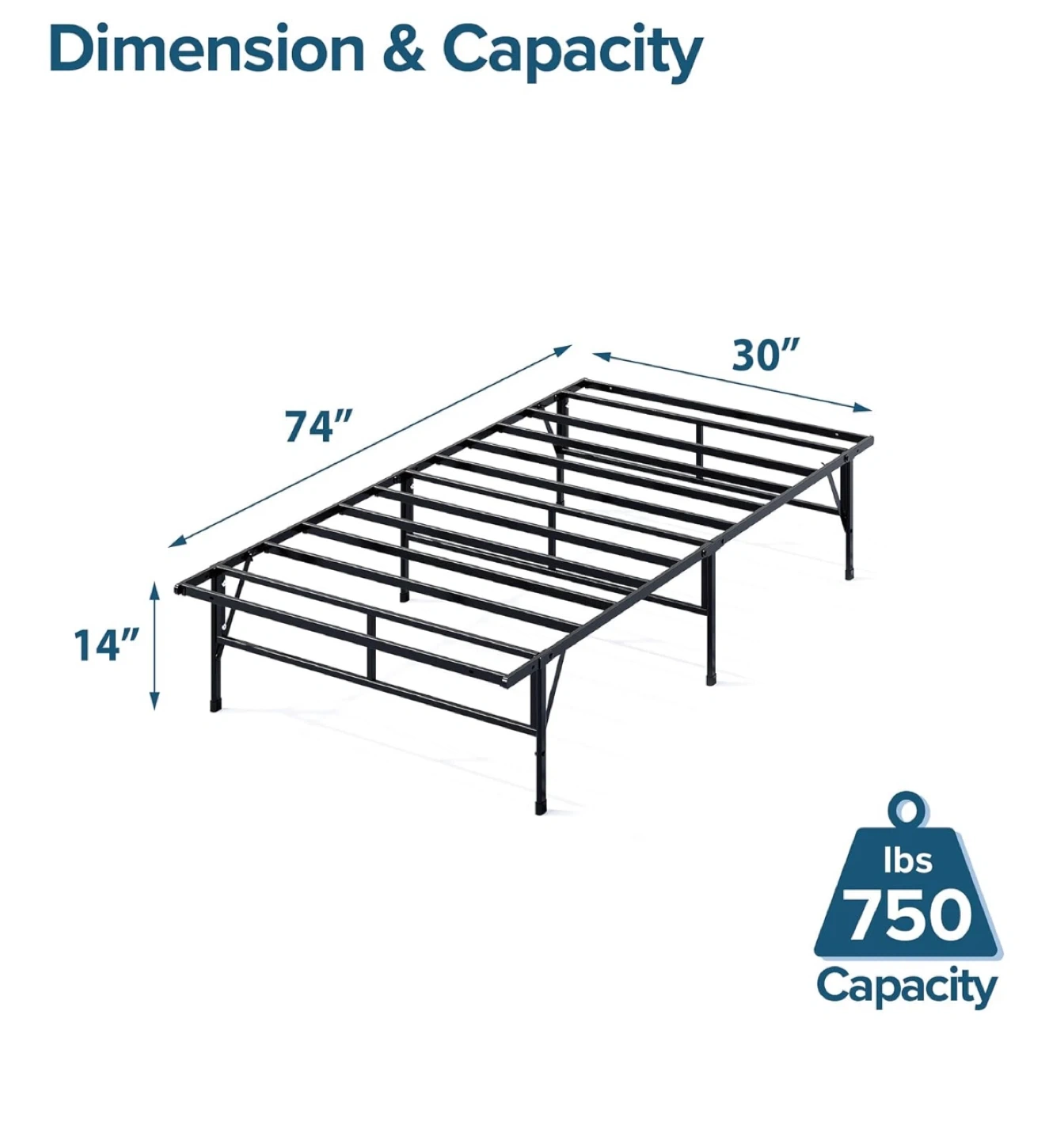 Selling a sturdy metal with mattress ! It's a great option if you need something durable and easy to set up. The dimensions are 74 inches long, 30 inches wide, and 14 inches high, offering ample space underneath for storage.