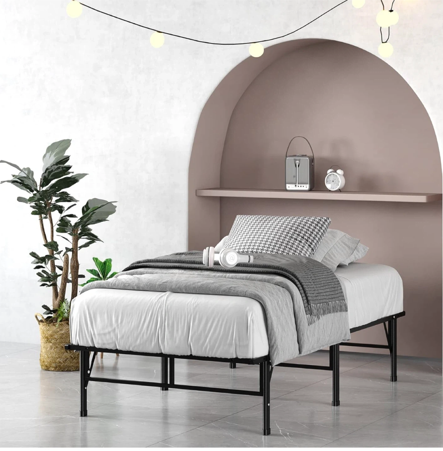 Twin Size Metal Bed Frame with mattress 74x30x14 inch