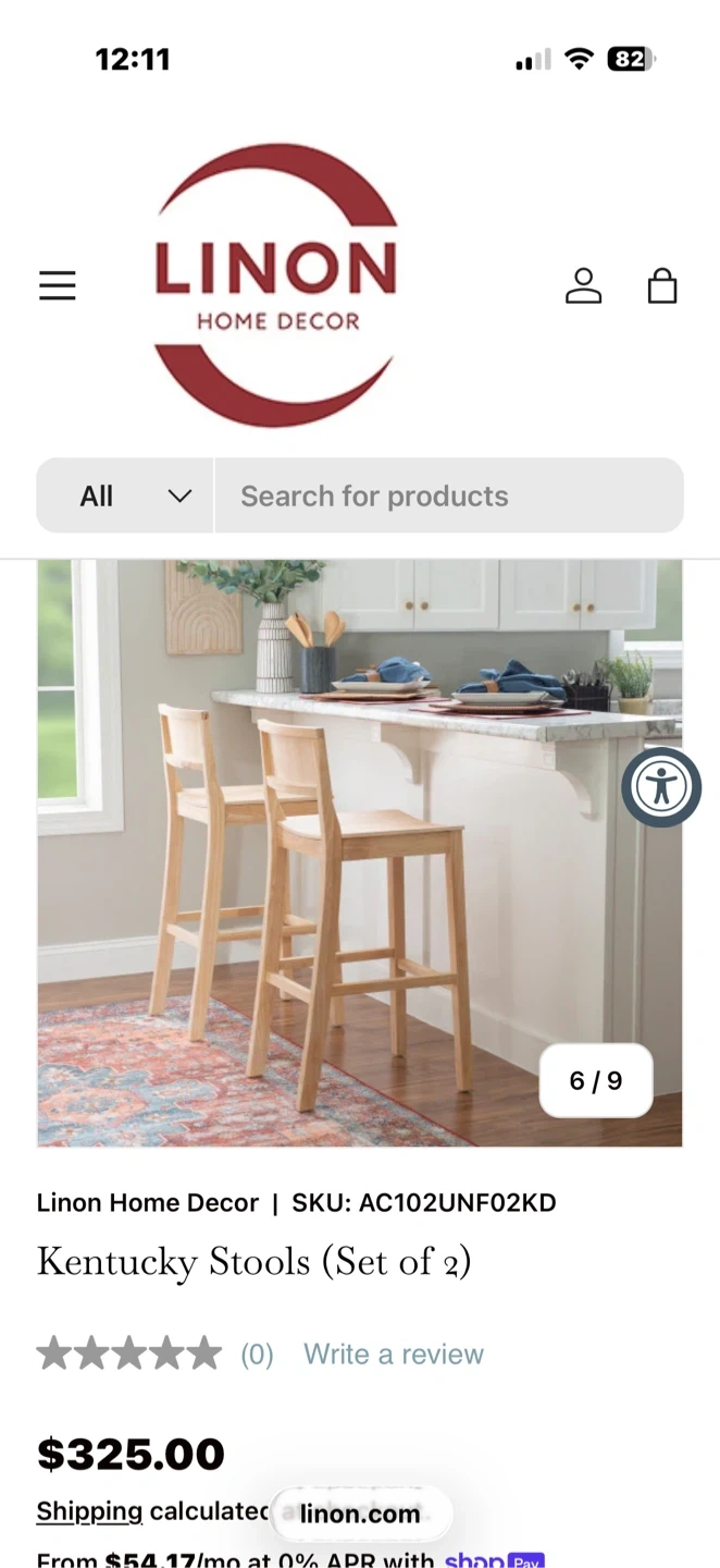 These wooden bar stools are from Linon Home Decor. They have a natural wood finish. The seat height is 30.5 inches.
