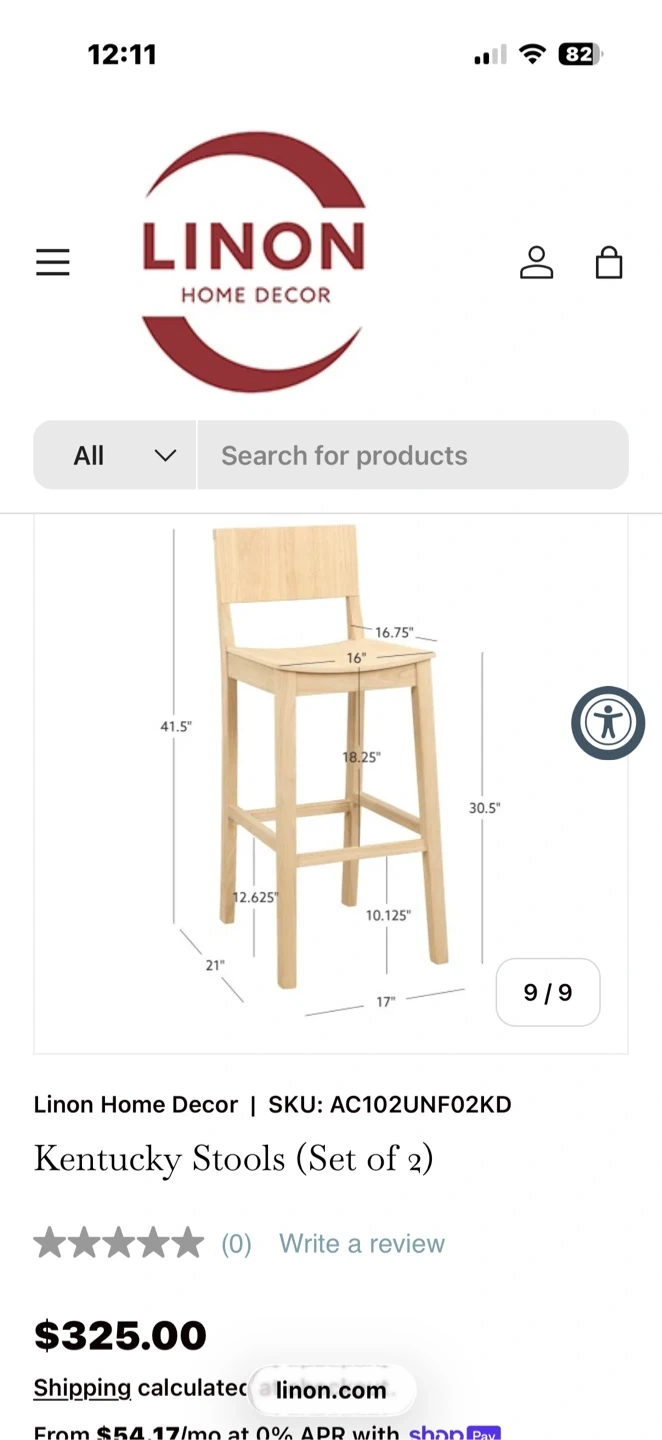 These wooden bar stools are from Linon Home Decor. They have a natural wood finish. The seat height is 30.5 inches.