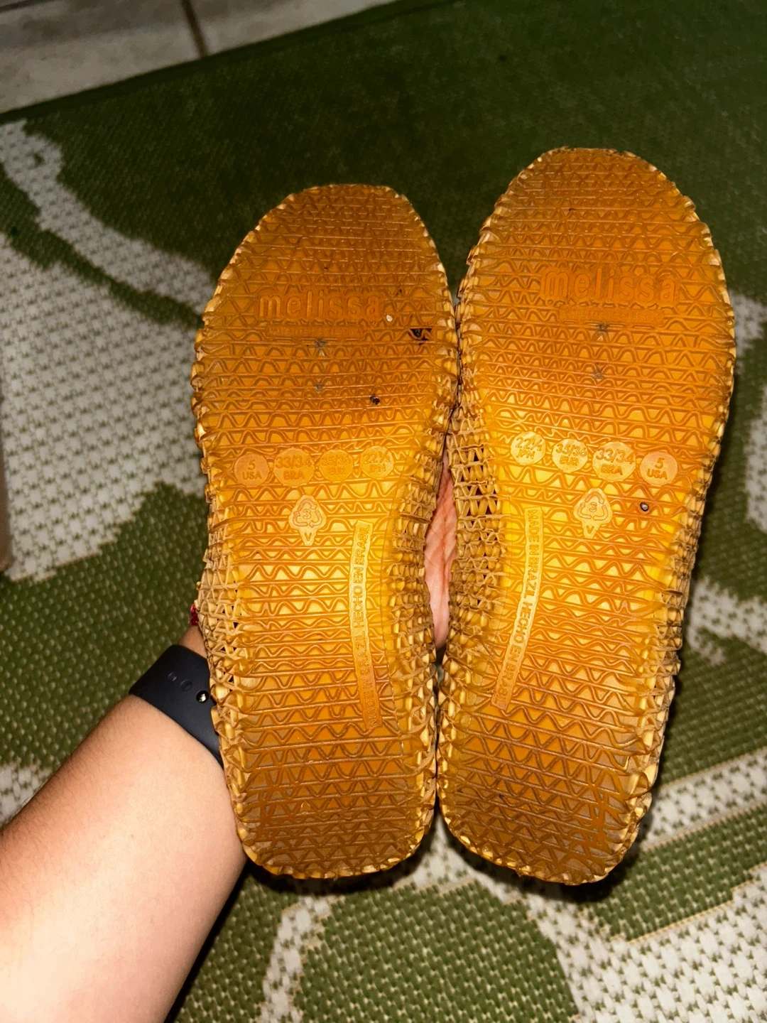 Selling a pair of Melissa + Campana women's flats in size 5. They have a unique woven design and are made of a flexible material. Perfect for adding a touch of style to your casual outfits!