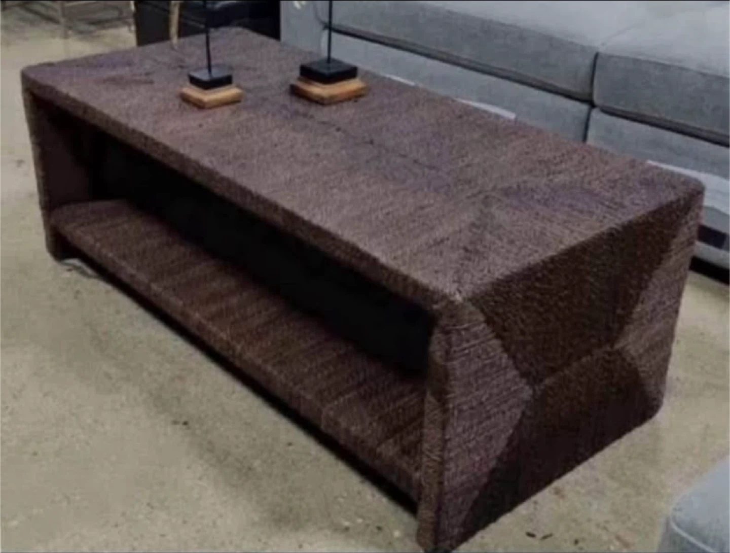 Selling a stylish brown woven coffee table. It features a convenient shelf for storage or display. The woven design adds a unique texture to any living space. New Rattan Woven Boho Coffee Table - MUST SEE! New In The Original Box - In Excellent Condition! Great Reviews!! Dimensions: 17” H x 22” W x 48” L Trusted Seller - Read / See My Reviews