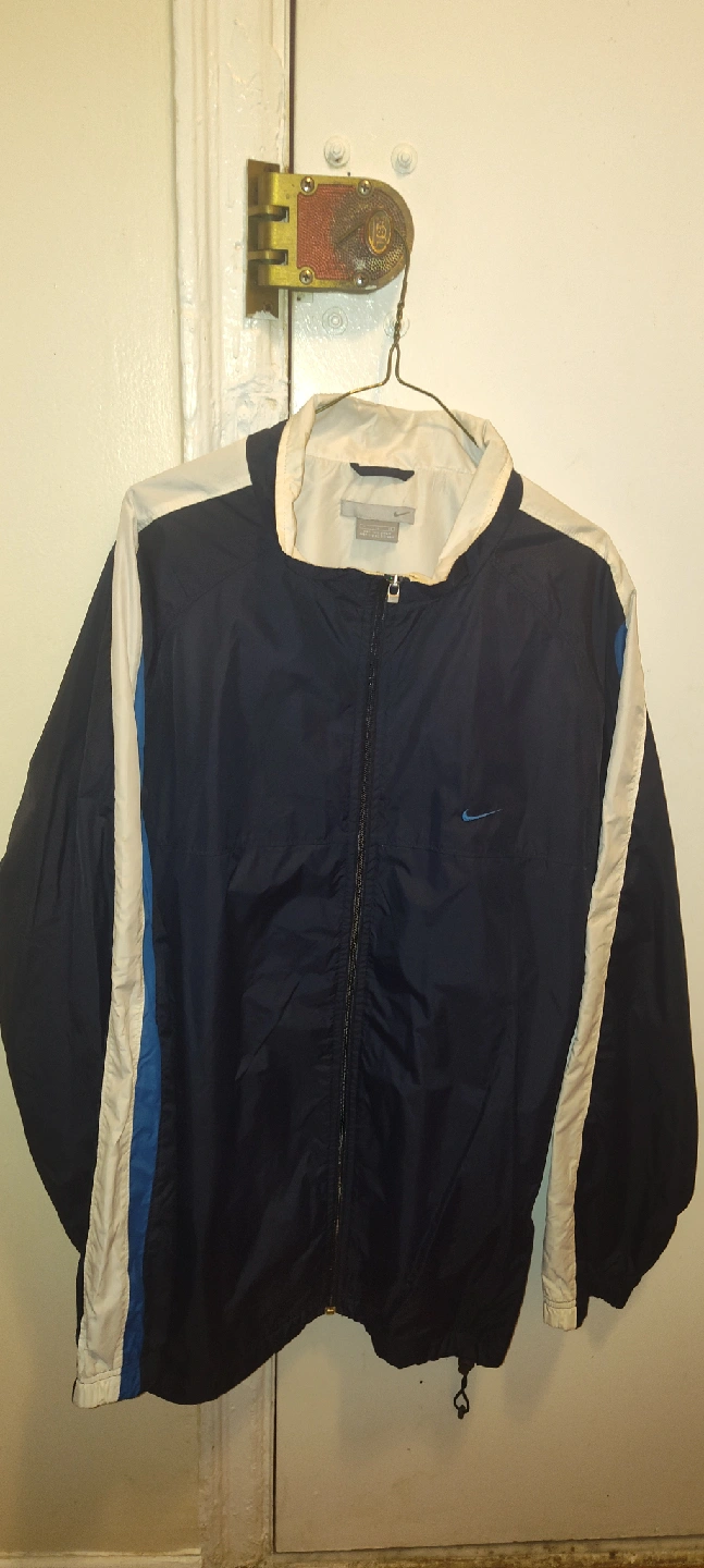 135Selling a Nike windbreaker jacket in blue and white. It's in great condition and ready for a new home! Perfect for layering or wearing on its own during those breezy days