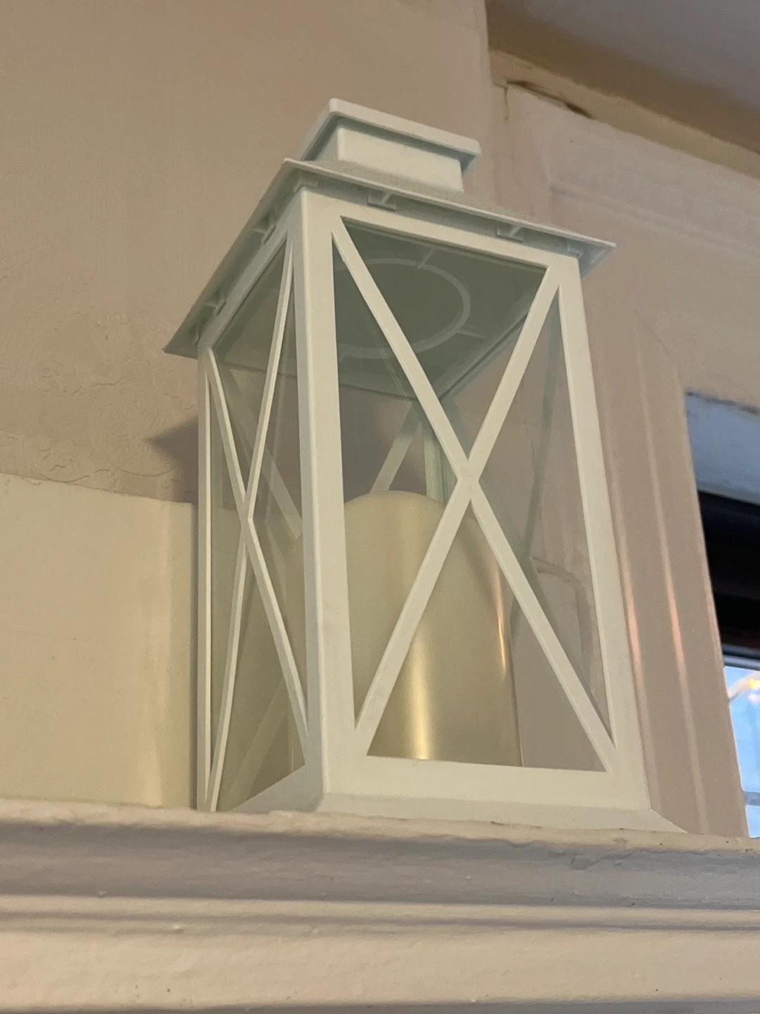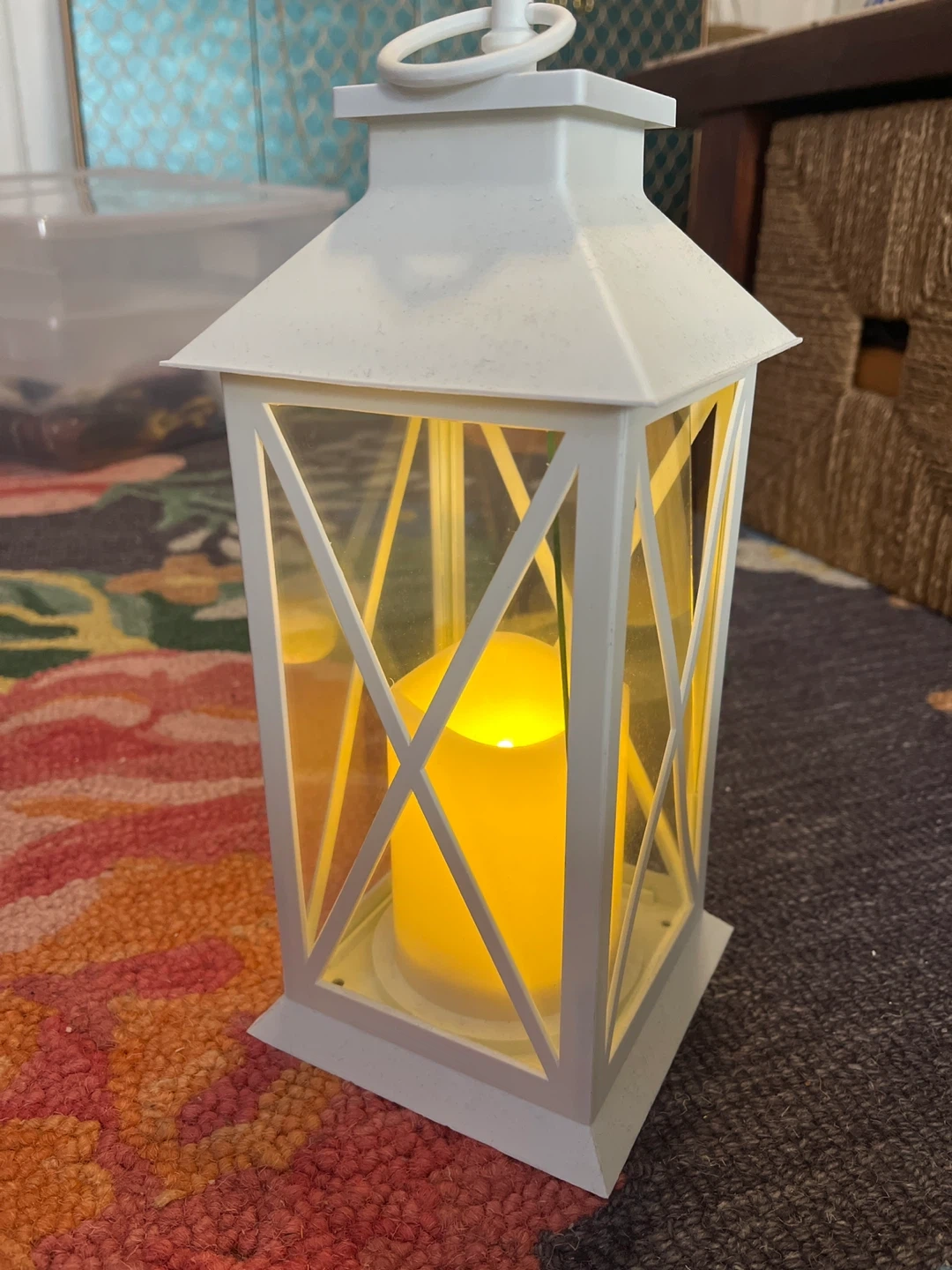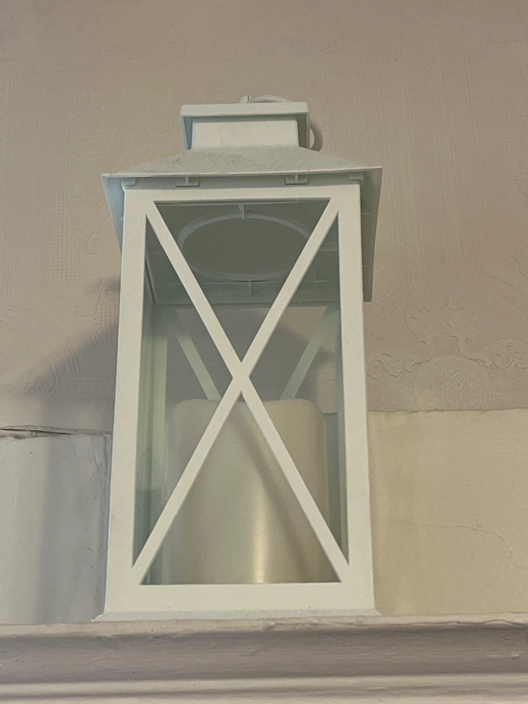 Selling 2 white decorative lanterns. Glass panels. They are battery powered. In great condition!