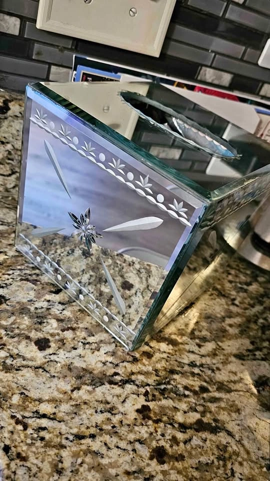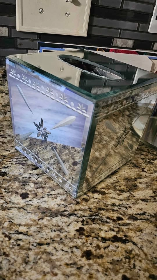 In excellent condition! Glass mirrored Tissue Box. Asking $10