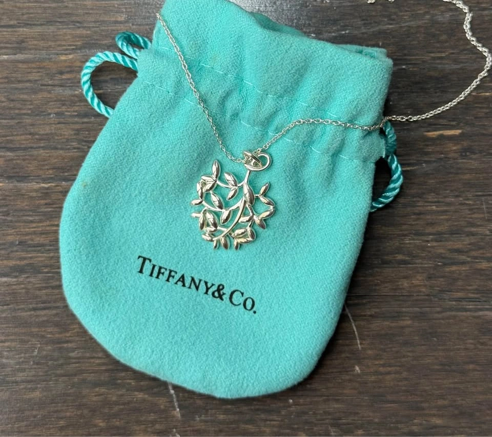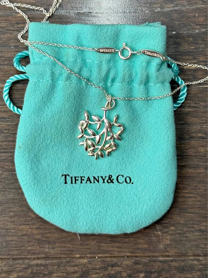 Selling a Paloma Picasso Olive Leaf Pendant, Tiffany & Co. Sterling silver, small size, on an 18” chain. Inspired by the olive branch, symbolizing peace and abundance. Elegant and timeless design.