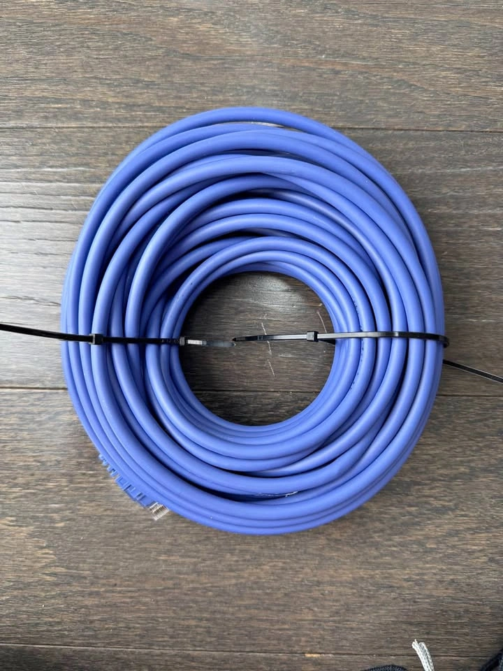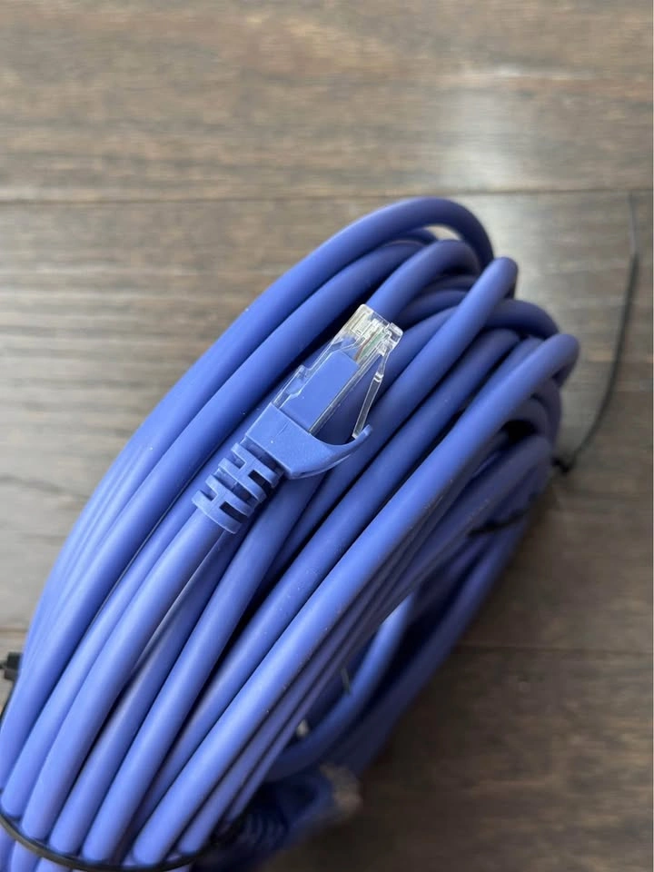 Selling a Best Buy Essentials™ 50’ Cat-6 Ethernet Cable in Blue. High-speed, reliable connection for home or office networking.