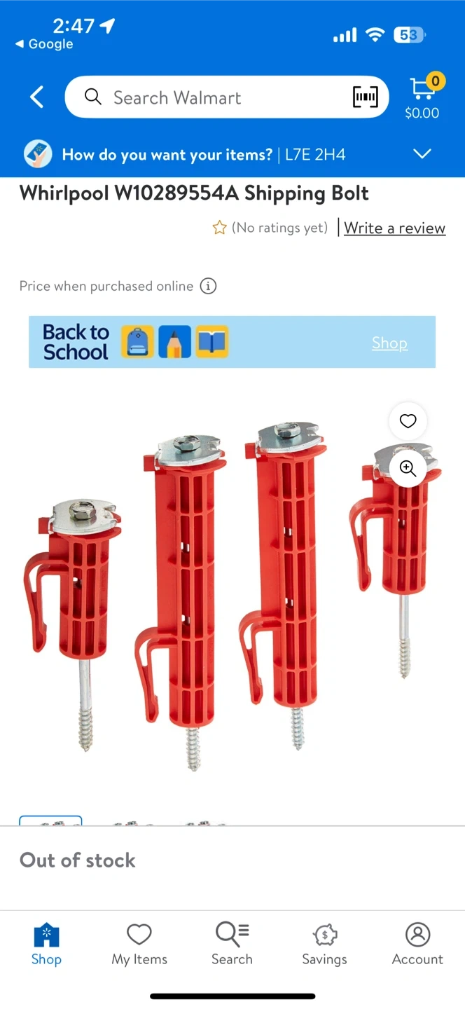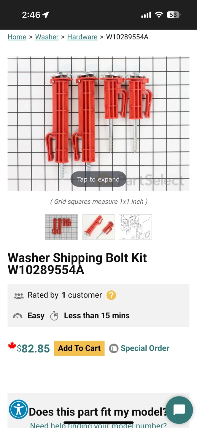 35Selling a Whirlpool W10289554A shipping bolt kit for front load washers. These are genuine OEM parts to secure your washer during transport. Retails for around $60-$80!