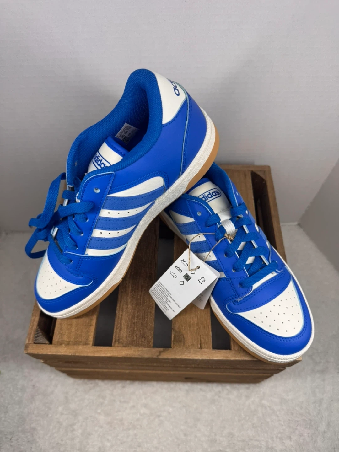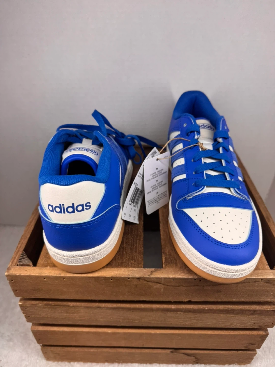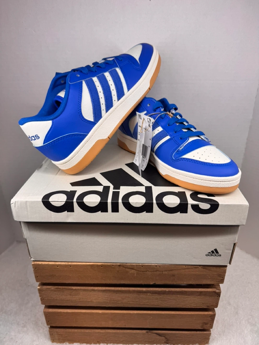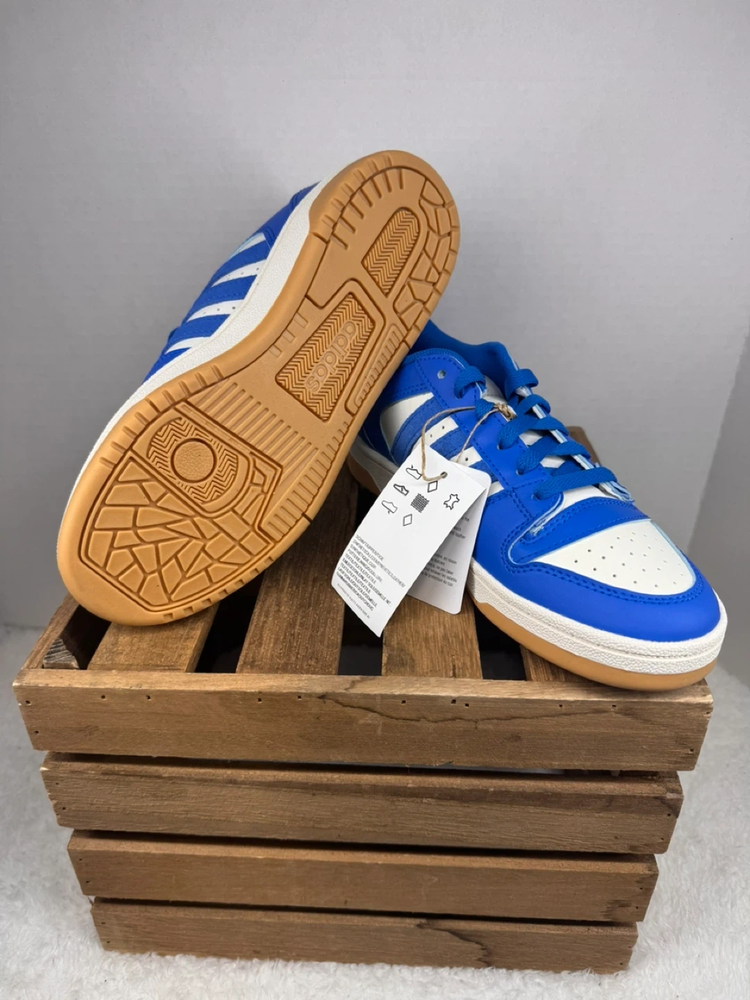 These Adidas Court Team Bounce shoes are brand new and ready for a new home! They come in a striking blue and white colorway and include the original box. Perfect for adding a pop of color to your wardrobe or for hitting the court in style