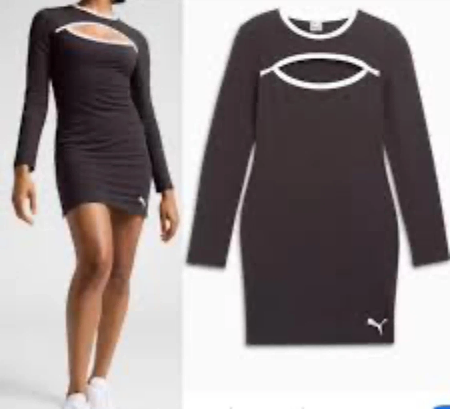Selling a Puma black dress in size small. It features a unique cutout design and long sleeves. Perfect for a casual yet stylish look!