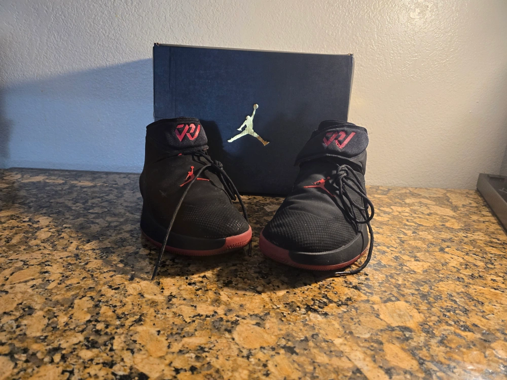 Selling a pair of PRE-OWNED Jordan Why Not Zero.1 shoes in black and red! They show some signs of wear, as you can see in the photos, but they still have a lot of life left. The shoes come with the original box.