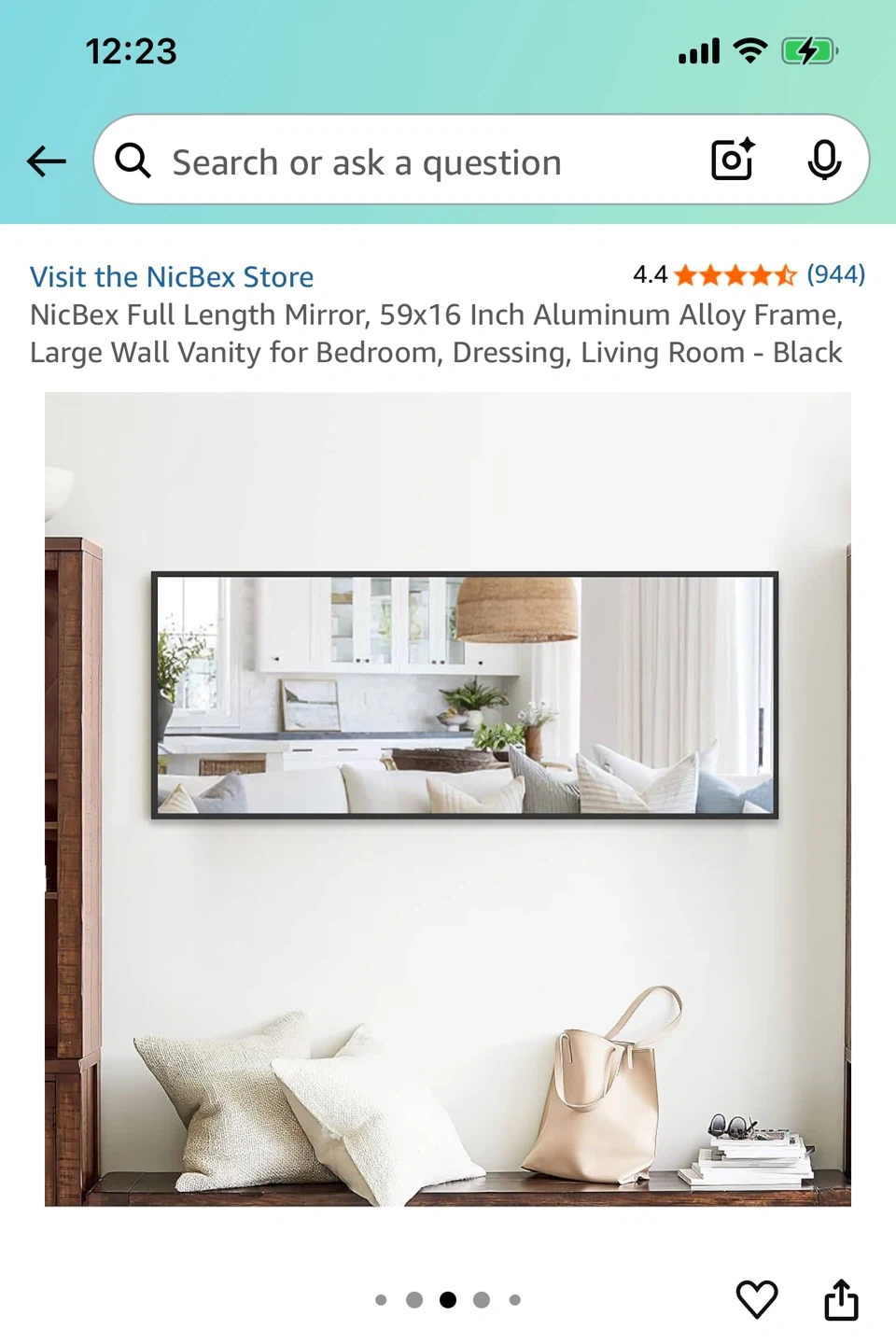 165Selling a full length mirror! It's black and measures 59x16 inches. Perfect for a bedroom, dressing room, or living room. Price firm, please. Like New condition (Out of Box) Orig. $108.17 *Door pickup only — 4th fl walk-up, no elevator. Please bring help or do a quick double park if needed. Thank you.