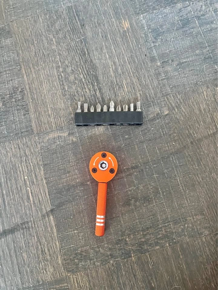 Compact ratchet screwdriver with 11 interchangeable bits. Easy to use, perfect for small repairs and assembly. Lightweight and portable.