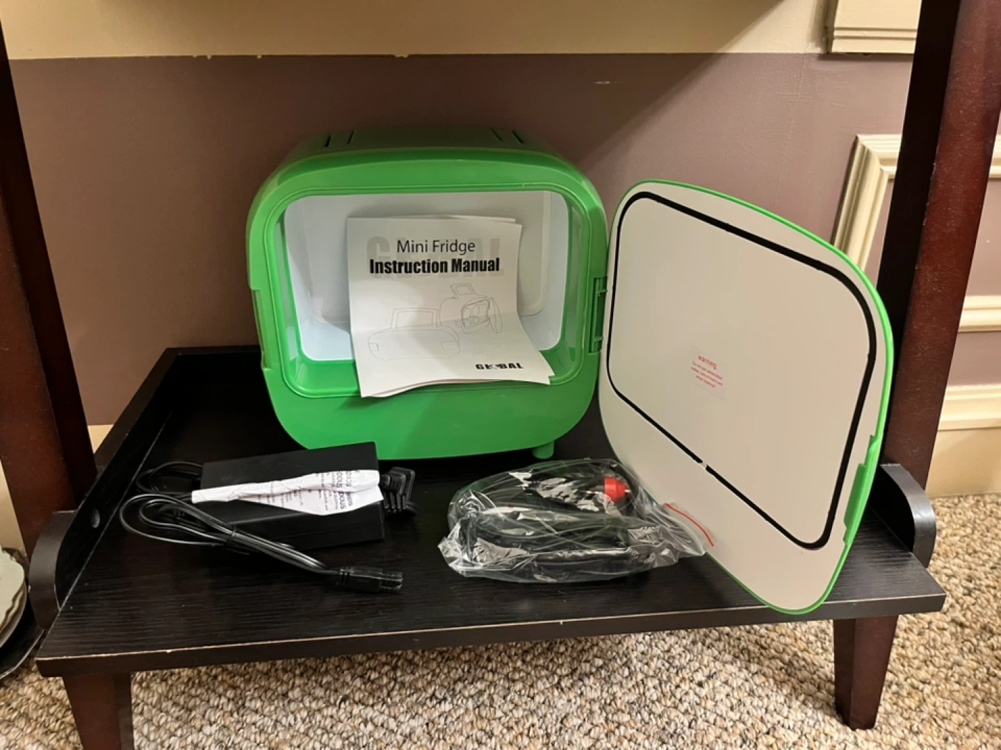Like new mini portable fridge by Global! Never used condition. Price is firm. Ready to keep your drinks, skin care products, and medications cold, or your foods hot. - Keeps cold drinks cold or hot foods hot - Holds 6 cans (12 oz.) - AC/DC power - Portable with carry handle - Use in the office at your desk, in the car, at home, camping, in the RV It also includes the AC and DC adapters, as well as the instruction manual!