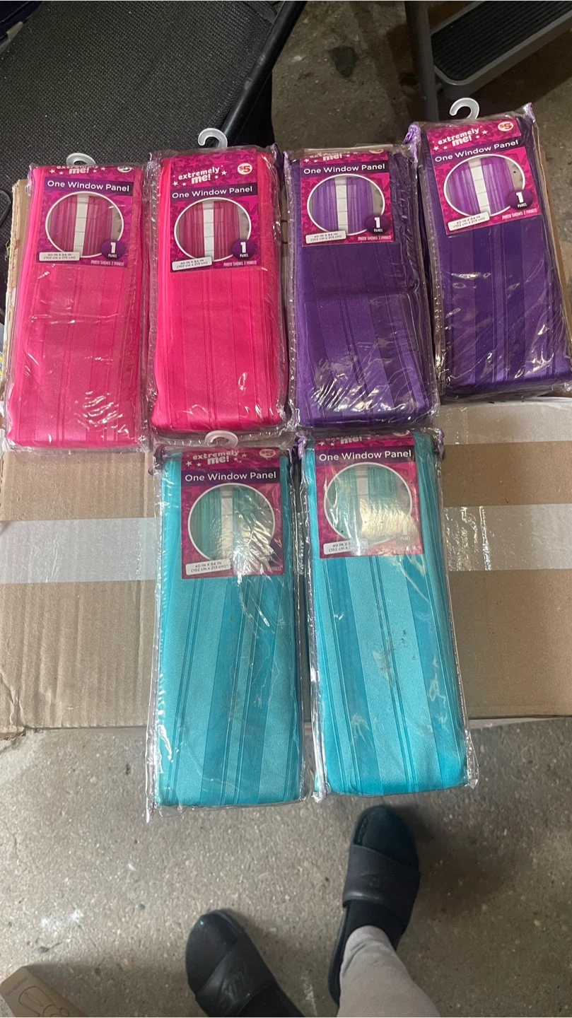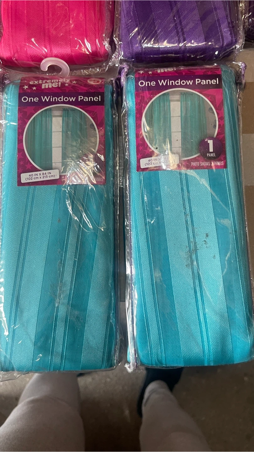 196I have several new 'Extremely Me!' window panels for sale. They are 40 in x 84 in (102 cm x 213 cm). Colors available are pink, purple, and blue. They're still in the original packaging! Take all for $15 or a set is $5