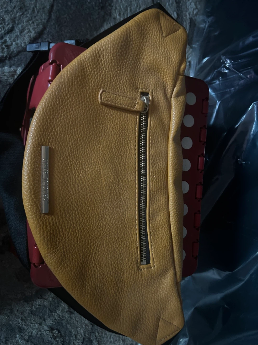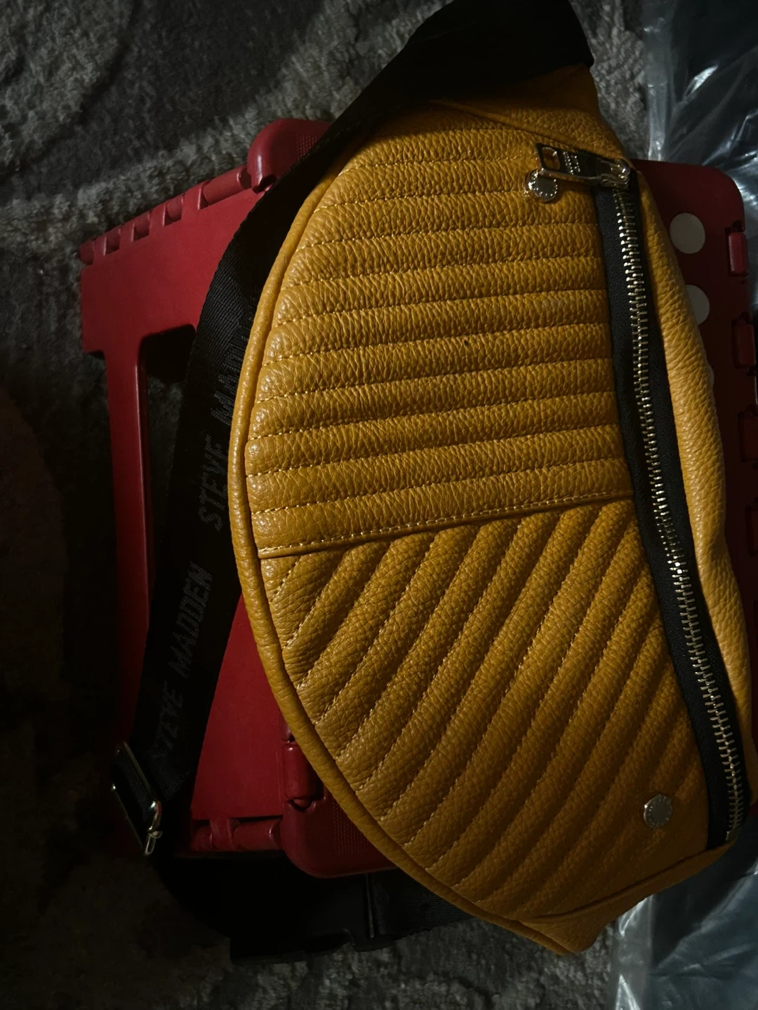 Selling a Steve Madden belt bag in a mustard yellow color. It has a zipper closure and an adjustable black strap. Great for carrying your essentials! Never used and in good condition