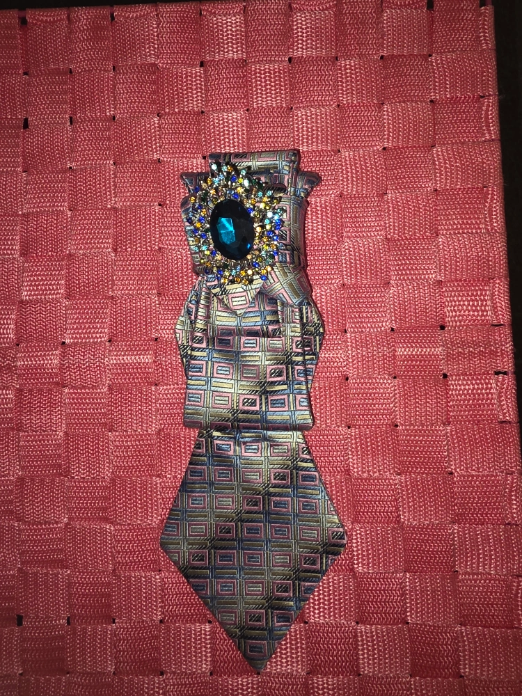 488Selling a unique necktie featuring a striking rhinestone embellishment. It's a standout piece that adds a touch of sparkle to any outfit!