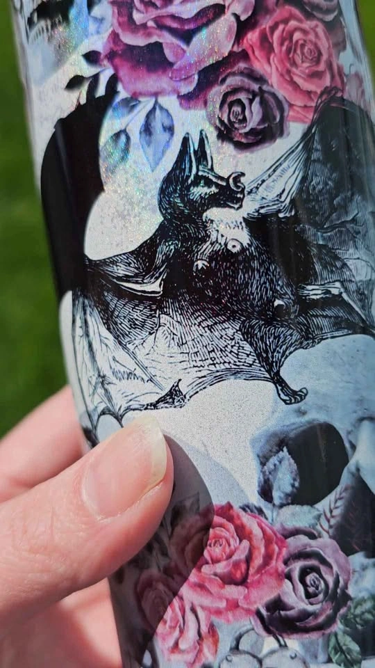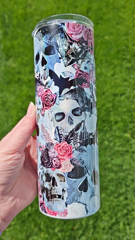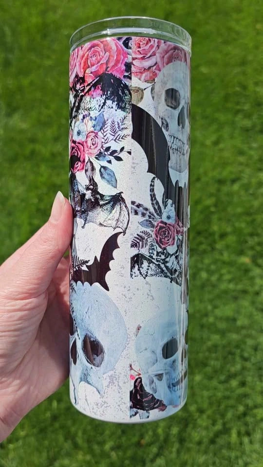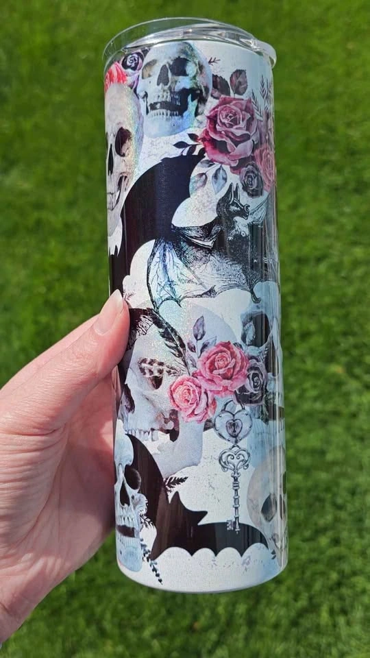 Get ready for fall vibes with this one-of-a-kind tumbler! ๐ฆ๐๐น โข Holographic finish that shimmers and changes with the light โข Decorated with bats, floral and skulls for the ultimate spooky aesthetic. โข Double-walled insulated โข Keeps drinks hot or cold for hours 20oz size, perfect for coffee, tea,or your favorite iced drinks โข Includes sliding lid lid & reusable straw Whether you're sipping pumpkin spice or iced cold brew, this tumbler is a must-have for spooky season lovers! Makes a great gift for Halloween fans, gothic style lovers, or anyone who enjoys unique drinkware ๐ค๐๐น Local Pick-up in Naperville, IL More designs Artsy Niche Creations