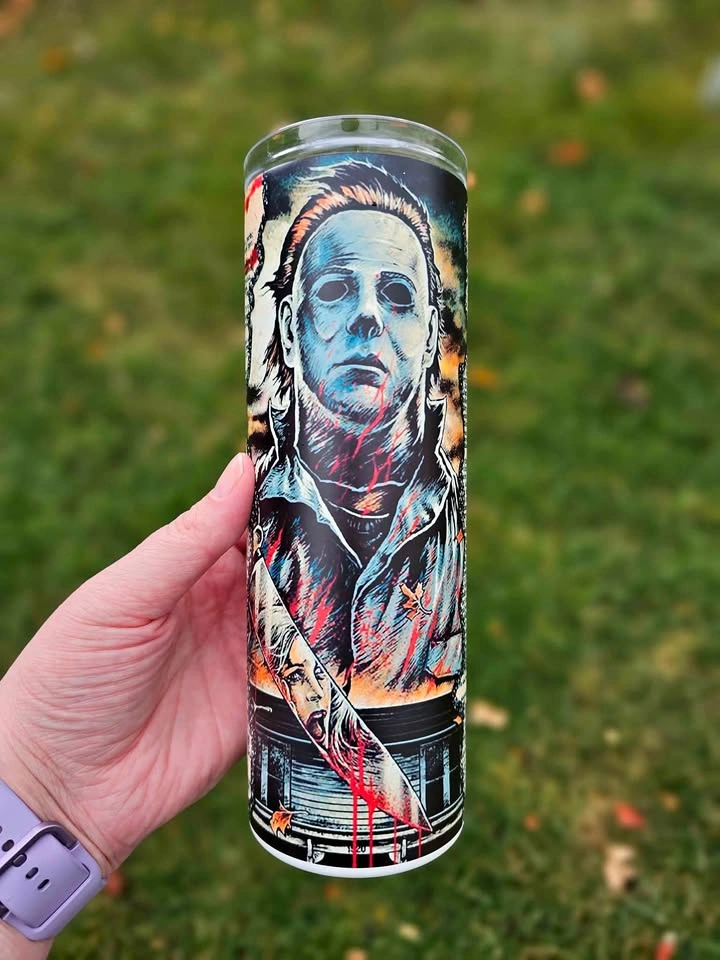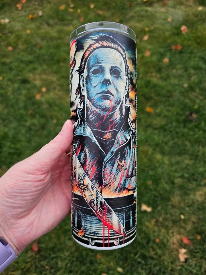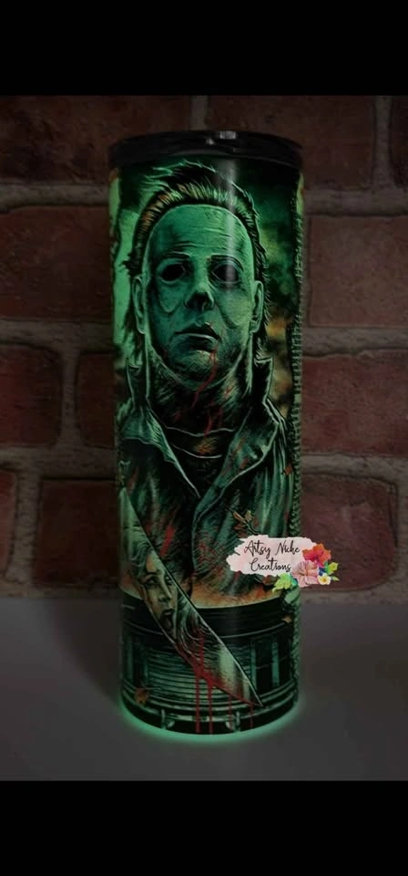 New! Michael Myers Halloween Glow in the Dark Tumbler ๐ Glows Green. Tumbler comes with straw, sliding lid and box. Pick-up in Naperville, IL