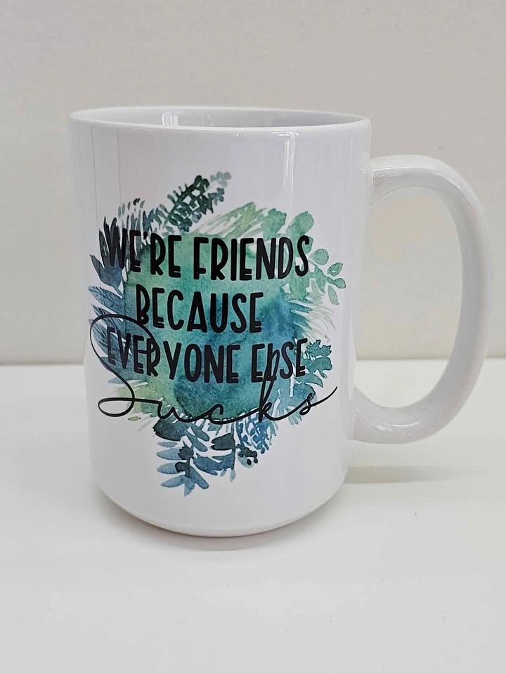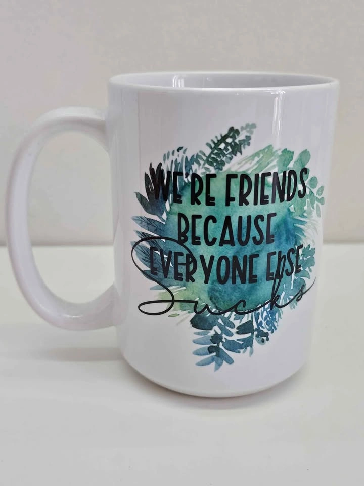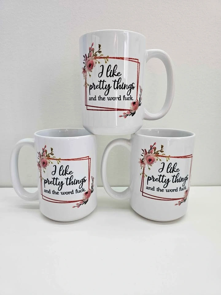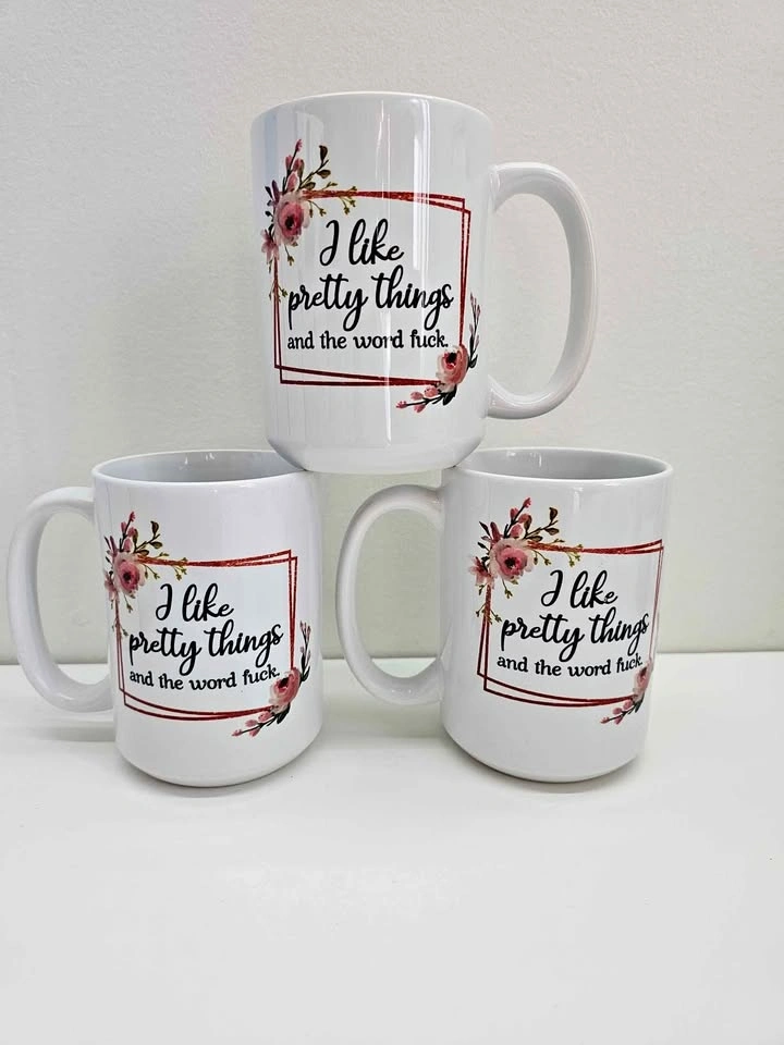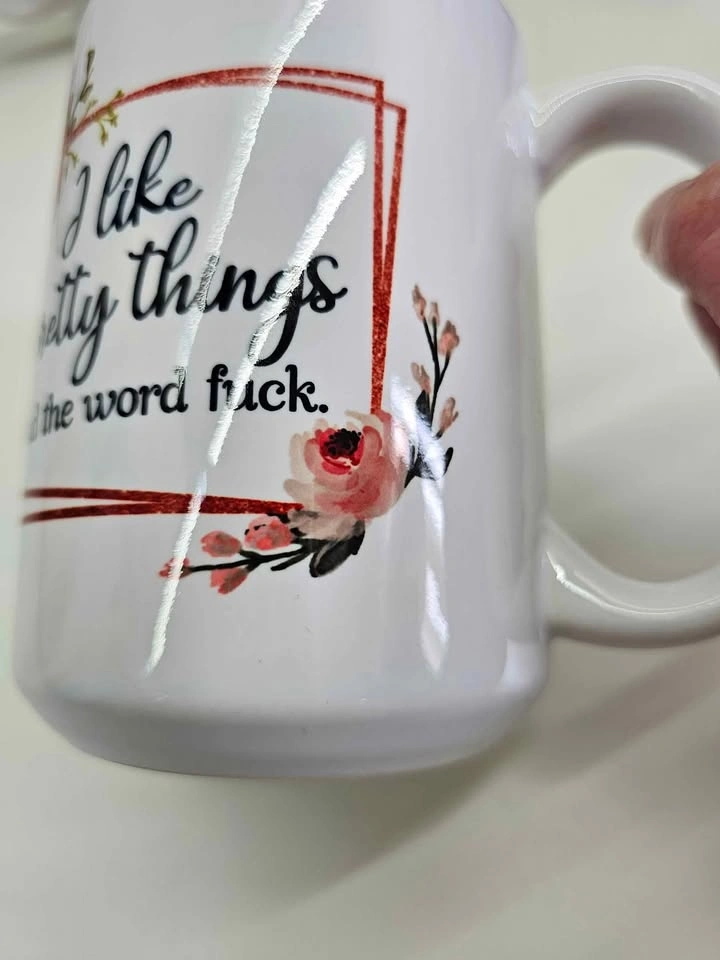 Opps coffee mugs! Need to clear out happy accidents. $5 each I like pretty things and the word F 2 Right Handed - Black Dots/Smudge 1 Left Handed - Blue Ink Smudge There goes my last F 2 Left Handed- Paper Flipped back down while hot on both Letter L and F on the other smudged. We're friends because everyone else sucks 1 Double Sided - Didn't like the design Pick-up in Naperville, IL