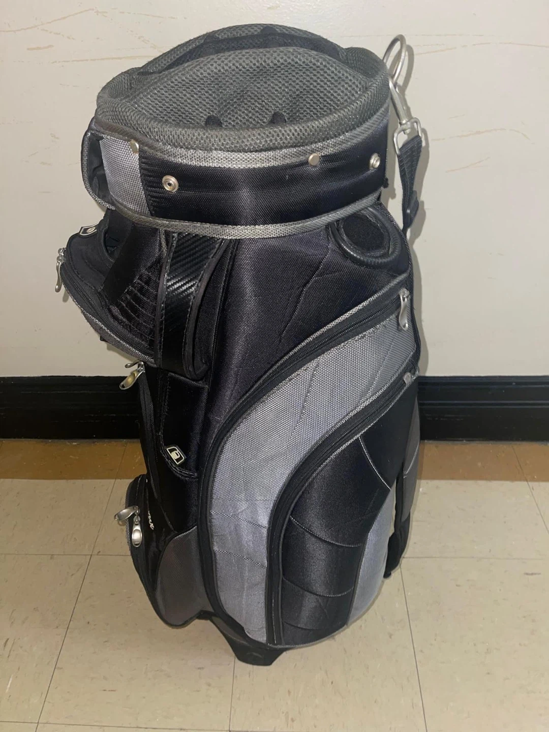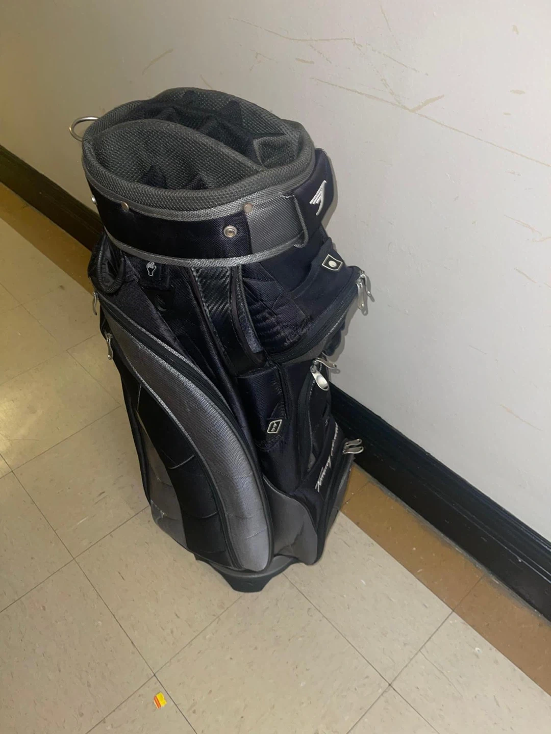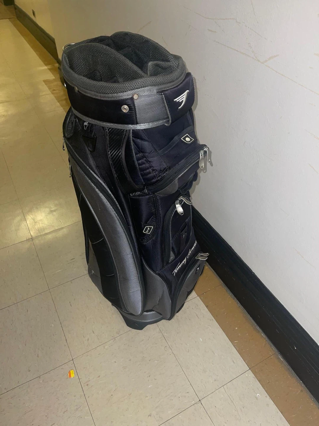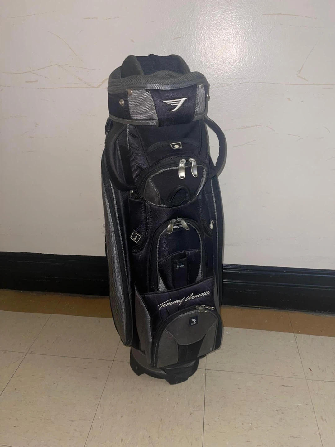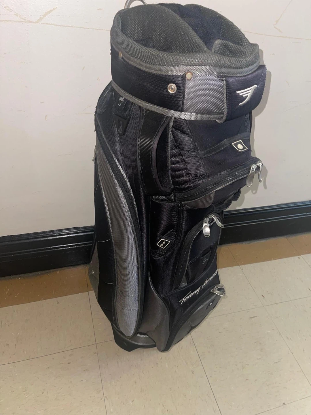 Selling a Tommy Armour golf bag in black and gray. It's in good condition and ready for the course Tommy Armor golf bag excellent condition light and soft with a shoulder strap to carry it on the shoulders pickup queens