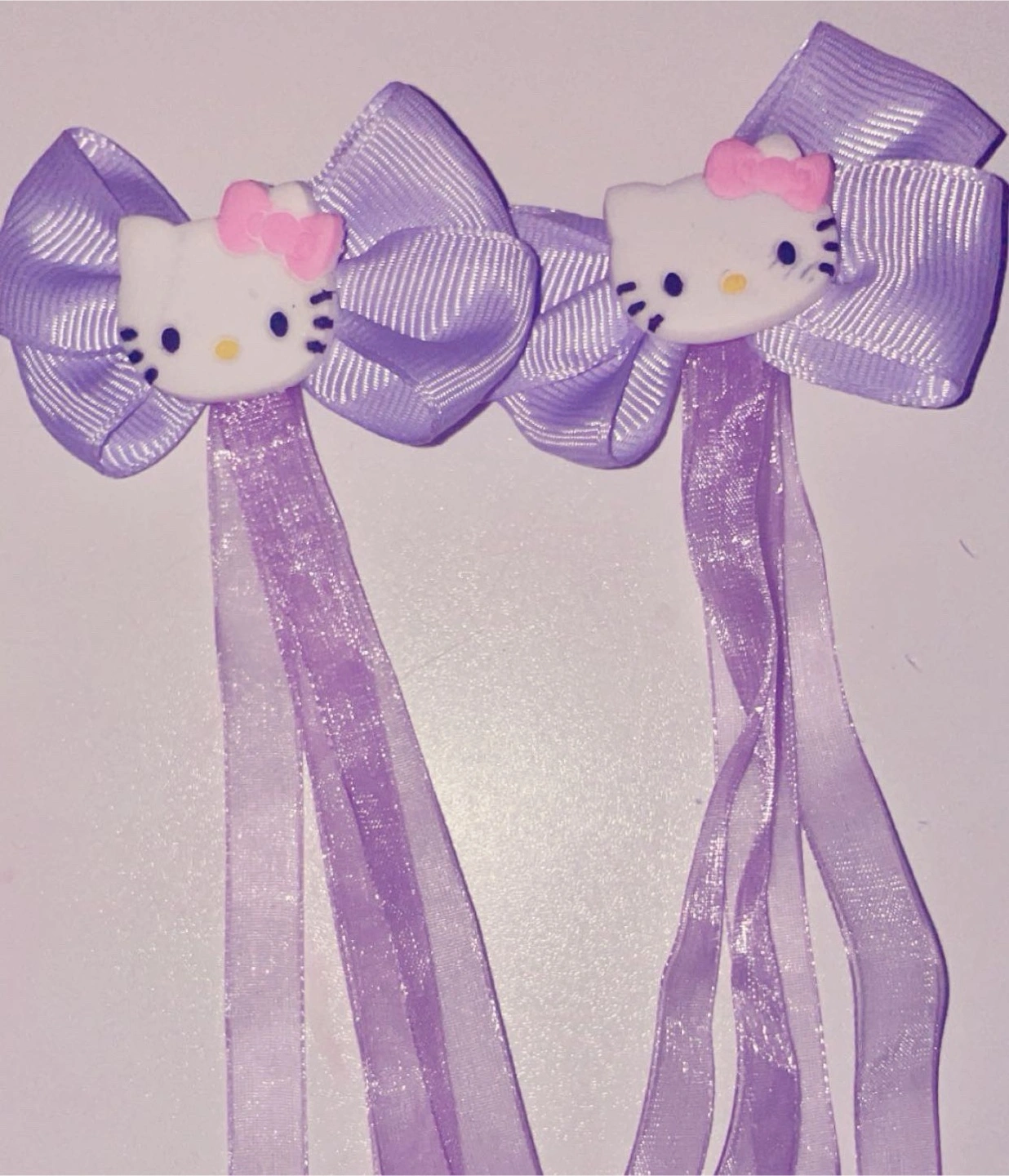 Buy & SellHello Kitty Hair Bows - PurpleHello Kitty Hair Bows - Purple$5Cute pair of Hello Kitty hair bows! They're a pretty light purple color and feature Hello Kitty's face on each bow. Perfect for adding a little kawaii to any outfit0 chats·0 favorites·7 viewsSELLERJcBronx Mosholu364 reviewsWHERE TO MEETStarbucks