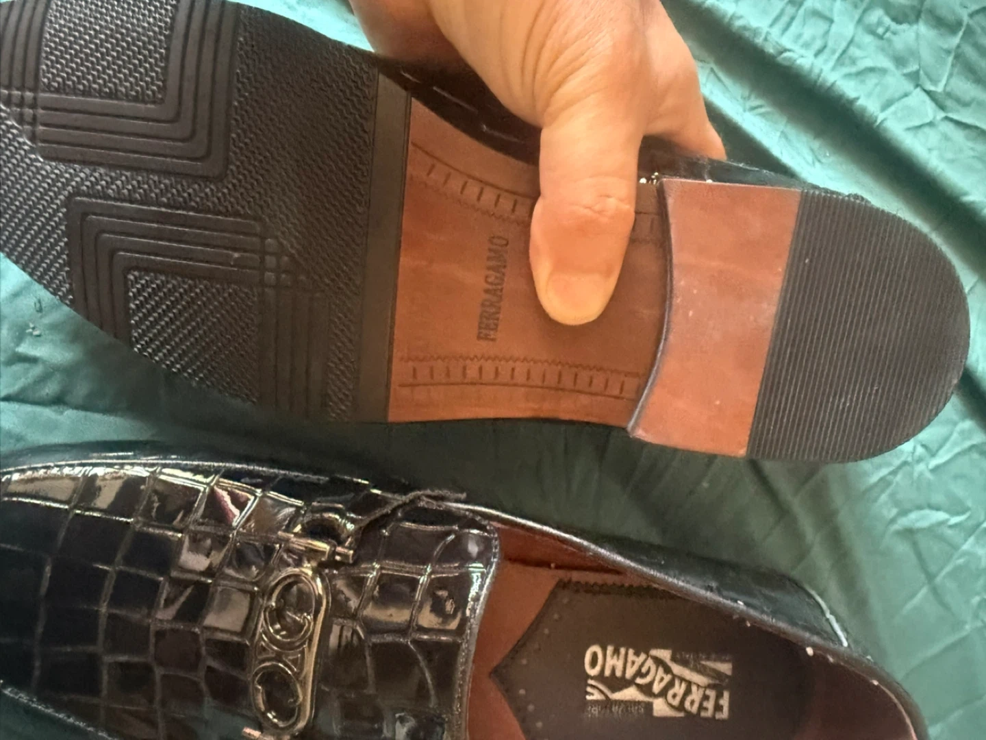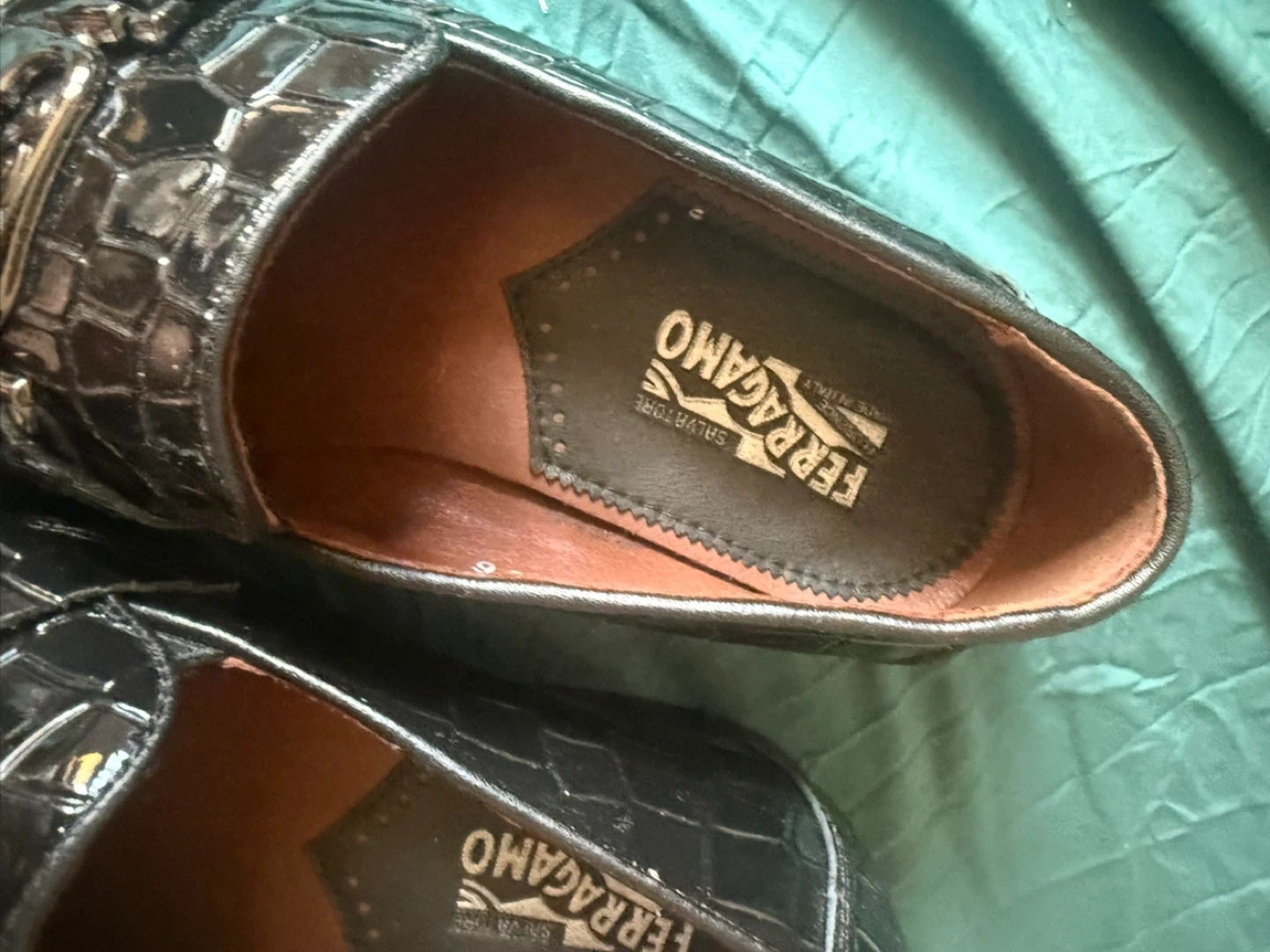 10Selling a pair of Salvatore Ferragamo black leather loafers. They are in good condition and feature a stylish design. Perfect for adding a touch of elegance to your outfit!