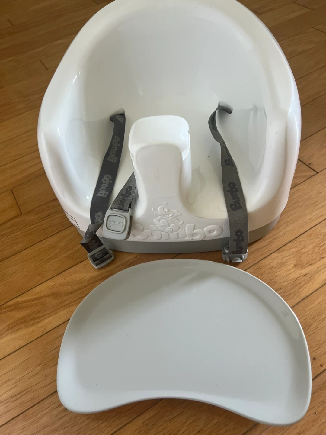 Selling a Bumbo floor seat that comes with a tray. It's in great condition and perfect for little ones who are learning to sit up. The seat is designed to provide support and comfort, and the tray is great for snacks or toys!