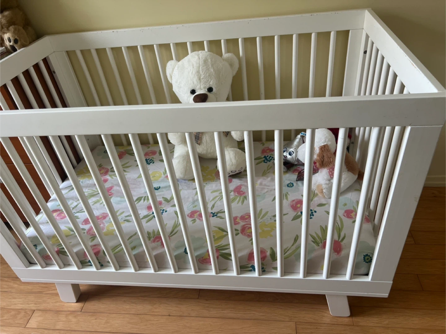 Selling a white baby crib in great condition! It's sturdy and perfect for your little one's nursery. The crib features a classic design that will complement any decor. Mattress is included!