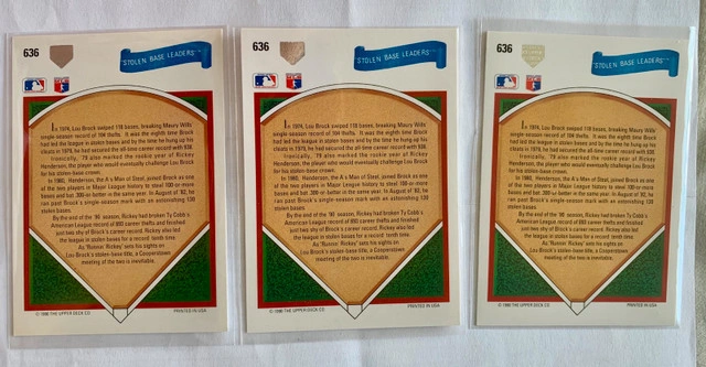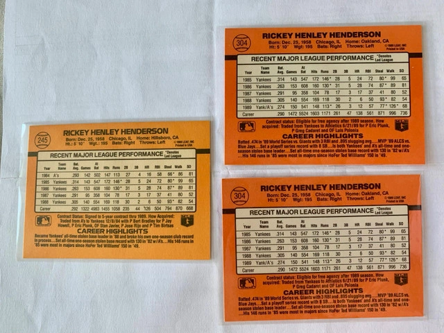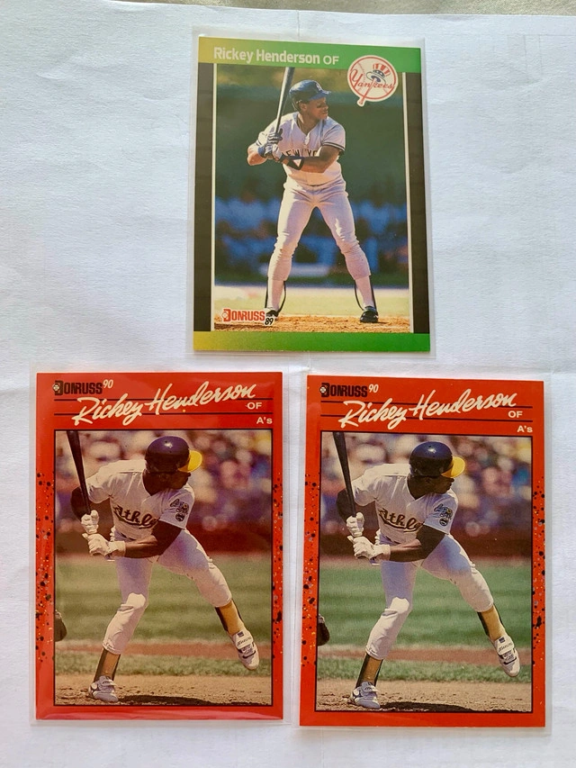 Explore the world of sports memorabilia with these unique Rickey Henderson Error Cards from Donrus and Upper Deck. A must-have for collectors, these cards feature the legendary baseball outfielder and thief, Rickey Henderson, and is a standout piece due to its distinctive absence of a dot following "Inc" and the absence of a date on the bases. Whether you're a fan of Major League Baseball or a dedicated collector of sports trading cards, these cards celebrate a slice of baseball history. They’re a tribute to Henderson's dynamic career and an interesting anomaly for collectors of sports trading card singles. Add this piece of baseball lore to your collection today.