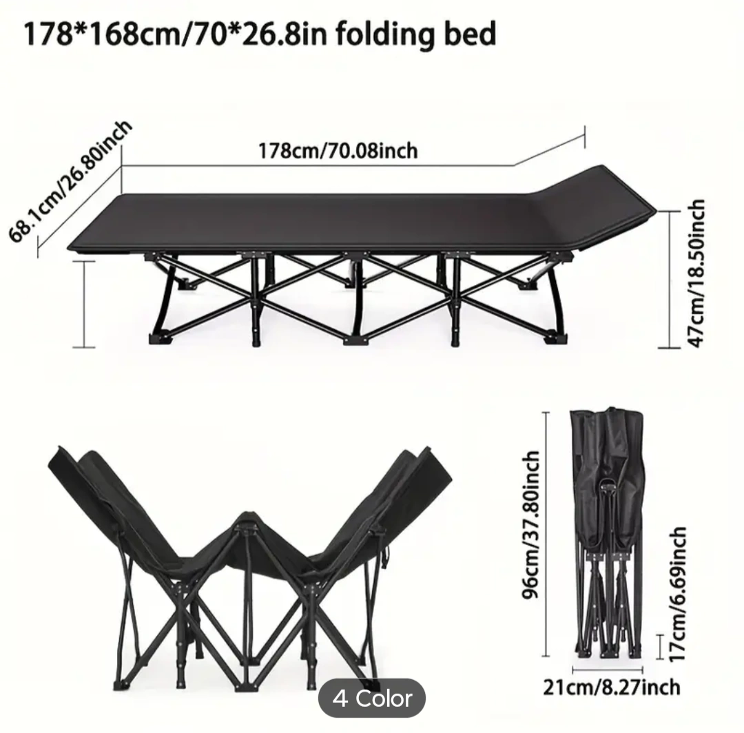 221Selling a folding bed that's easy to store and set up! It's 70 inches wide and 26.8 inches long when unfolded. When folded, it measures 37.8 inches tall and 8.27 inches wide. comes with a carrying bag, literally used for about 3-4 hours max. no longer needed. it's great for unexpected last minute guests.