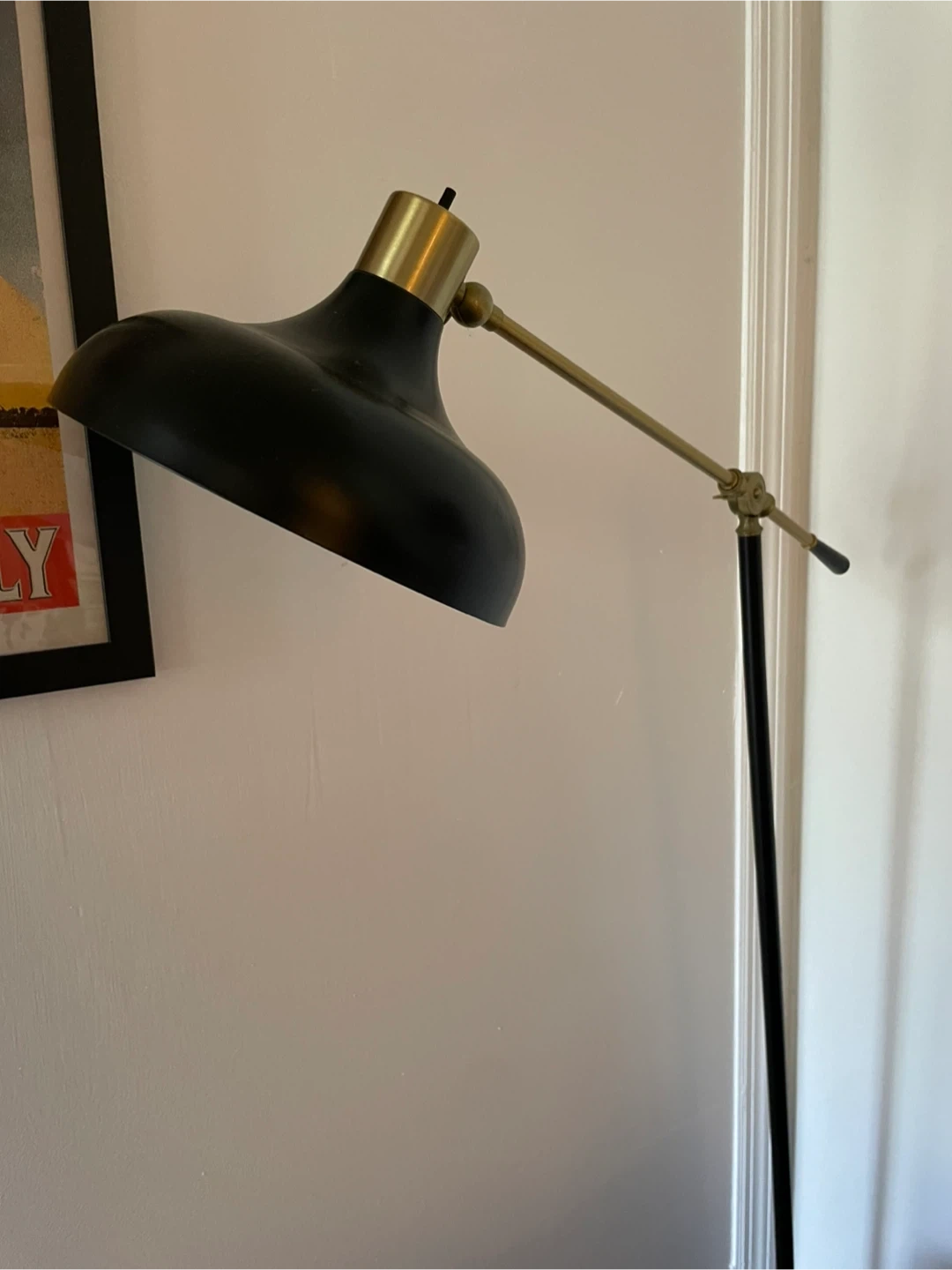 Selling a stylish floor lamp with a black shade and brass accents. It’s in great condition and would look perfect in any living room or study.