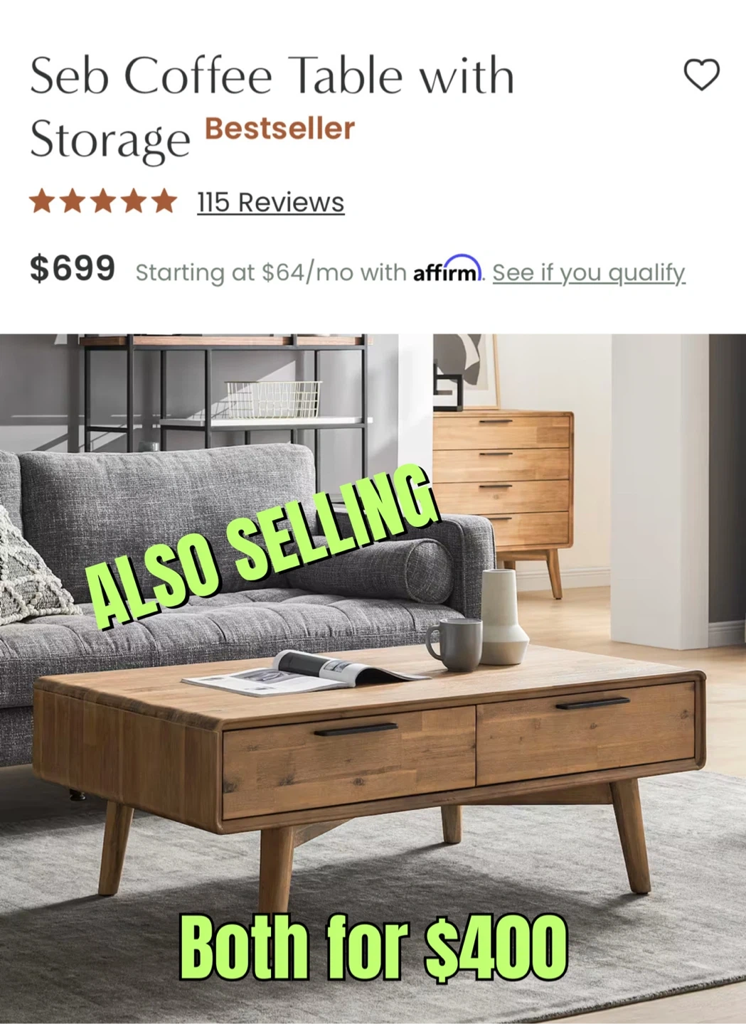 Only a few months old and in mint condition. Both drawers are lined with black velvet, and I’ve used a protective insert to keep them pristine so the interior looks brand new. Retails for $359 at Castlery Solid acacia wood with modern, minimal design, natural wood texture Dimensions: 22”W × 17.7”D × 21.6”H Smoke-free, pet-free home Available for pickup in Hell’s Kitchen