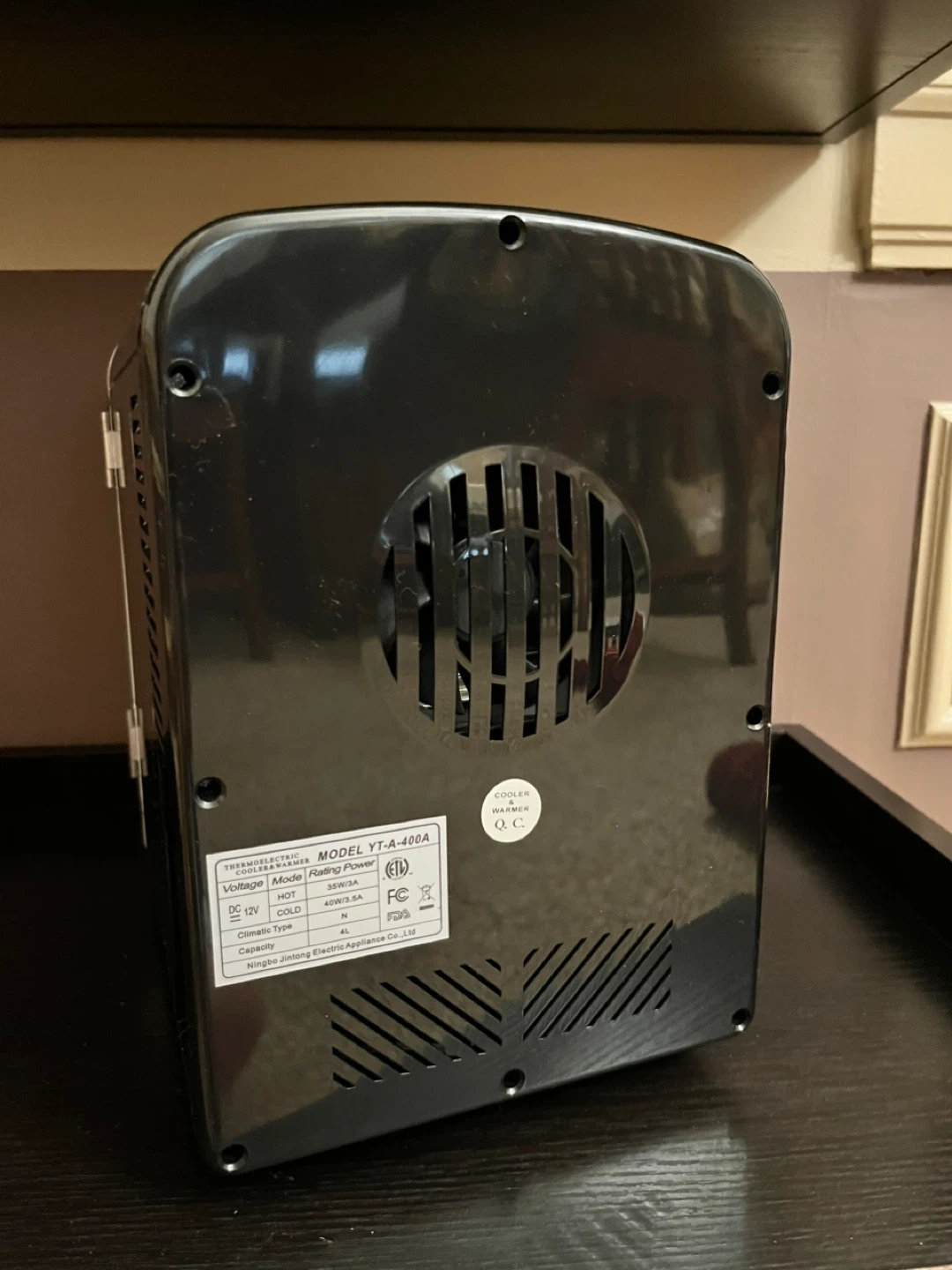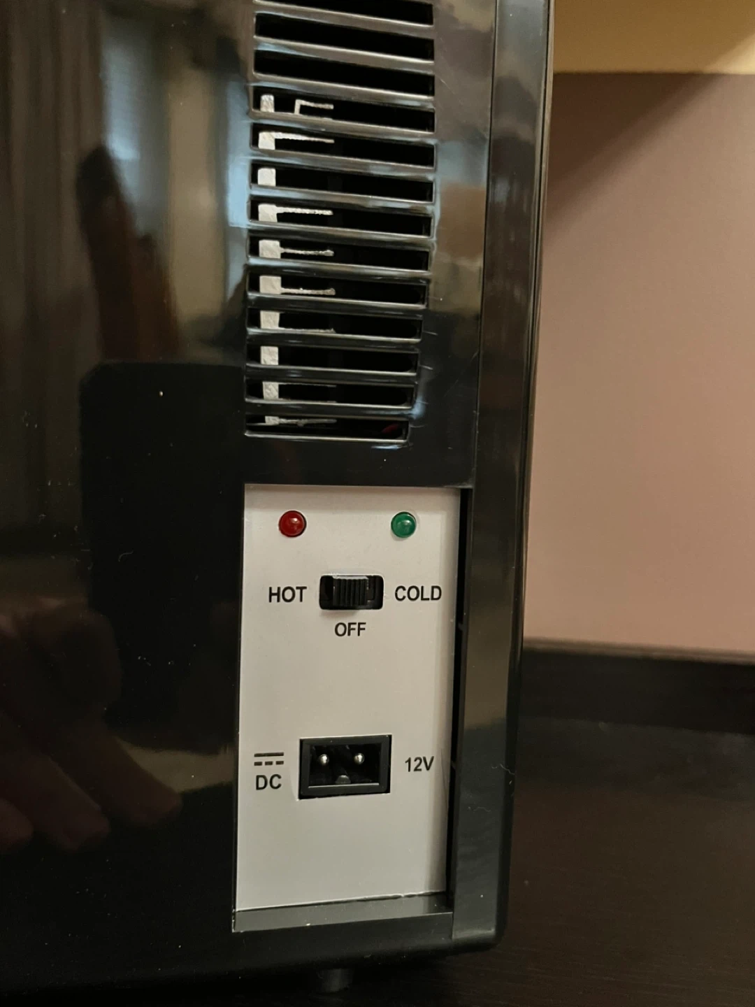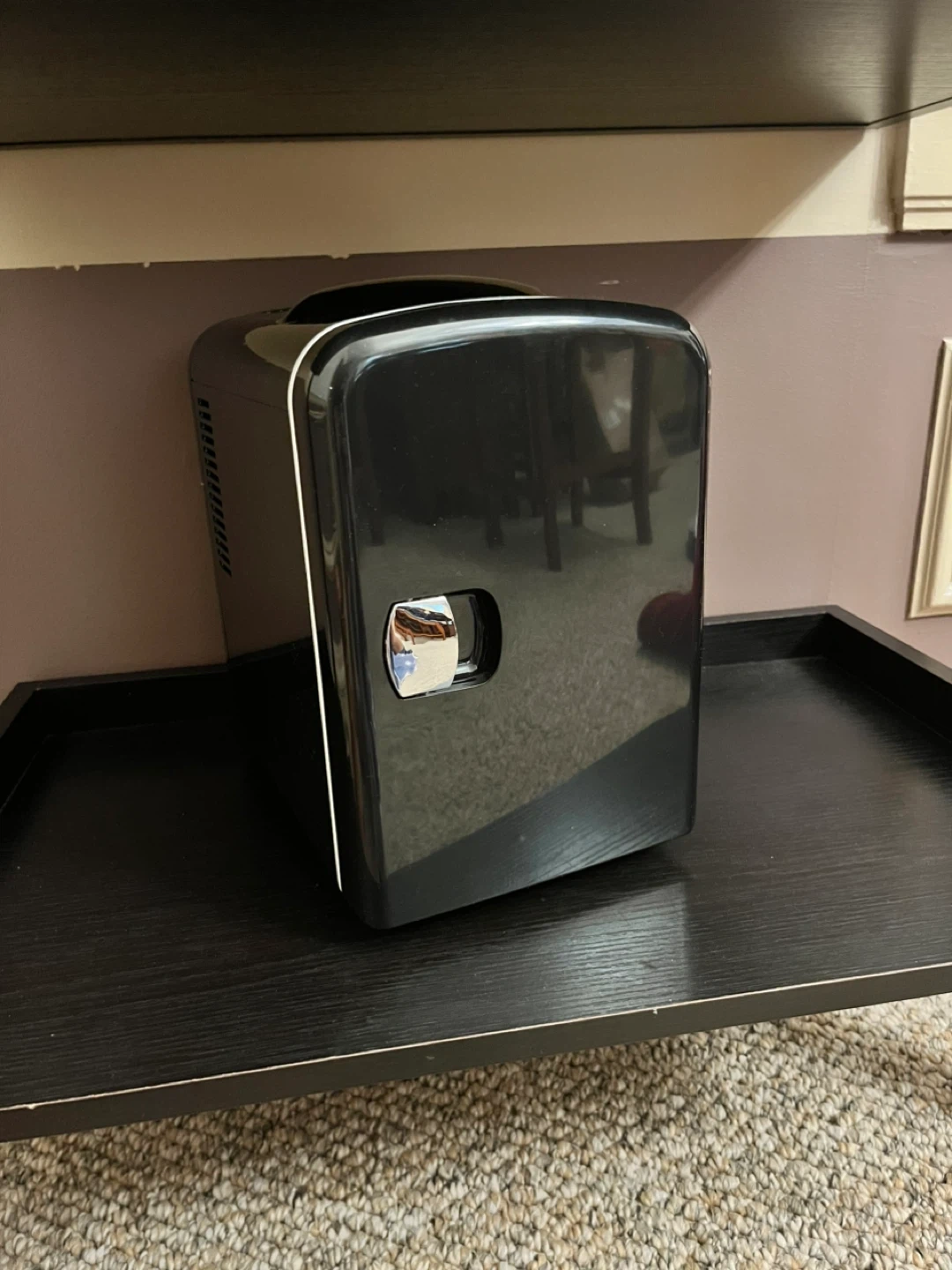 Selling a Chefman Mini Portable Personal Fridge in black. Price is firm. It's in great condition and comes with its original box and components! For use in your car, truck, SUV. Keeps cold drinks or snacks cool, and hot foods warm. It can hold up to 4L. Model number YT-A-400A.