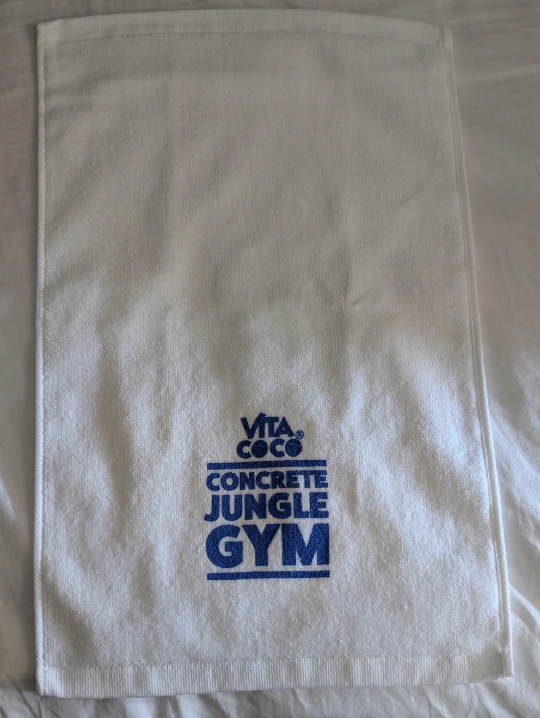 Here's a Vita Coco Concrete Jungle Gym towel! It's in great condition and ready for a new home. Perfect for the gym or just to have around